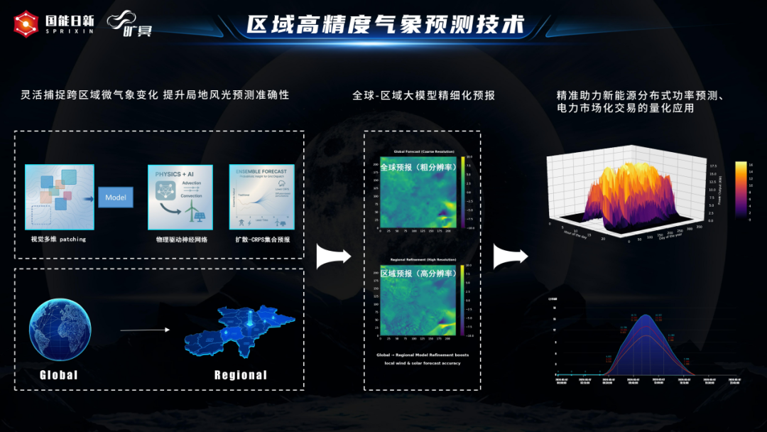 近日,國能日新自研「曠冥」大模型完成了自正式發(fā)布以來的首次迭代升級,迎來了「曠冥」2.0版本。 本次升級,除了對模型穩(wěn)定性和整體性能進行優(yōu)化,更是在技術(shù)層面全效升級。首先在大模型技術(shù)方面,創(chuàng)新采用了多維度 patching 注意力機制架構(gòu),并顯式嵌入了平流、對流方程,構(gòu)建物理驅(qū)動的深度神經(jīng)網(wǎng)絡(luò)模型。此外,聚焦新能源“區(qū)域高精度預(yù)測"領(lǐng)域的技術(shù)升級,構(gòu)建全球-區(qū)域-場站三級嵌套框架,疊加地形感知殘差校正,實現(xiàn)精準高效的區(qū)域精細化高分辨率預(yù)報,并融合擴散-CRPS 集合預(yù)報與動態(tài)圖神經(jīng)網(wǎng)絡(luò),以大規(guī)模擾動樣本充分刻畫不確定性,提升科學(xué)決策能力。基于此,「曠冥」2.0不僅可提高全網(wǎng)新能源預(yù)測準確率,在部分區(qū)域的風(fēng)電/光伏功率預(yù)測精準率上更是達到1~1.5%的精度提升。 技術(shù)突破:以「精度革命」書寫行業(yè)標準 新能源后運營時代,挖掘能源經(jīng)濟價值是行業(yè)升級的關(guān)鍵點。相應(yīng)地,新能源企業(yè)的運營和管理模式也需要與時俱進,通過精尖技術(shù)和數(shù)智化手段來達到更加科學(xué)高效的新能源資產(chǎn)管理。特別是,分布式新能源快速增長與四可標準化,電力體制改革深入推進,催生了在分布式和電力市場場景下的新能源數(shù)智化、精細化管理運營需求。 在此背景下,國能日新「曠冥」大模型在「區(qū)域精細化預(yù)報」、「大數(shù)據(jù)決策能力」、「極端天氣預(yù)報強化」三大領(lǐng)域?qū)崿F(xiàn)新能源預(yù)測能力強化,更強大、穩(wěn)定、精準的數(shù)據(jù)支持讓新能源從“穩(wěn)定供能”變?yōu)椤皟r值創(chuàng)造利器”。 「區(qū)域精細化預(yù)報」:分布式管理的 “數(shù)智引擎” 本次模型升級中,國能日新通過兩大技術(shù)升級,對「曠冥」在區(qū)域尺度的精準預(yù)報能力上進行了優(yōu)化。首先是模型升級,通過將注意力機制升級為“視覺多維度patching”,模型可更靈活地捕捉跨區(qū)域的細微氣象變化,大幅提高整體預(yù)測能力。此外,國能日新增加了“全球-區(qū)域大模型精細化預(yù)報方案”,達到對地形、氣象觀測與數(shù)值天氣預(yù)報數(shù)據(jù)的混合輸入與特征提取,不僅可提升模型在多尺度復(fù)雜條件下的穩(wěn)定性與普適性,更是讓模型在局地風(fēng)能與太陽能預(yù)測等應(yīng)用場景中表現(xiàn)出更高精度與穩(wěn)定性。 基于這兩項區(qū)域尺度的技術(shù)升級,「曠冥」可精準刻畫分布式電站所在的山谷風(fēng)、城市熱島等微地形 / 微氣象效應(yīng),達到更精細的區(qū)域空間高分辨率預(yù)測,將為分布式場景下的分布式功率預(yù)測、分布式電力交易等應(yīng)用帶來更可靠的數(shù)據(jù)支撐。 「大數(shù)據(jù)決策能力」:能源調(diào)度運營的 “智慧中樞” 國能日新基于生成式擴散模型和CRPS優(yōu)化算法等多種集合預(yù)報擾動技術(shù),結(jié)合「曠冥」氣象大模型獨有的動態(tài)圖神經(jīng)網(wǎng)絡(luò),生成“氣象大模型集合預(yù)報”。這種集合預(yù)報,相較于傳統(tǒng)確定性預(yù)報,能夠通過大數(shù)據(jù)統(tǒng)計、分析和推理,合理量化和有效刻畫關(guān)鍵轉(zhuǎn)折天氣演變過程中的不確定性,進一步提升中長期預(yù)測精度,并為電網(wǎng)新能源調(diào)度決策提供關(guān)鍵依據(jù),以大數(shù)據(jù)提高能源調(diào)度運營的決策能力。 「極端天氣預(yù)報強化」:新能源穩(wěn)定供能的 “安全防護” 在極端天氣事件預(yù)報方面,國能日新創(chuàng)新性地在「曠冥」AI氣象大模型中融入大氣物理學(xué)中的平流項和對流項的物理約束,使其對天氣演變過程的模擬更加精準。這種融合了物理約束的AI預(yù)報可有效提升極端天氣場景下功率預(yù)測精度,為后續(xù)功率預(yù)測和極端天氣預(yù)警奠定堅實基礎(chǔ),保障新能源高效發(fā)電、穩(wěn)定供能。在2025年3月6日至9日長江中游流域某省發(fā)生的覆冰事件中,「曠冥」2.0大模型通過覆冰預(yù)測與功率預(yù)測的組合策略,提前預(yù)測預(yù)警了覆冰事件發(fā)生情況,可以避免新能源發(fā)電損失,并且達到了4.7%的功率預(yù)測準確率提升,為新能源穩(wěn)定發(fā)電、高效運營提供重要保障。 應(yīng)用實踐:以「經(jīng)濟效益」盤活行業(yè)價值 國能日新「曠冥」大模型升級后,基于更可靠和精準的預(yù)測,在實際應(yīng)用中能夠為客戶帶來更多切實收益。 「交易收益升級」:電力市場博弈中長期超額收益 中長期預(yù)測是電力交易能夠帶來超額收益的策略關(guān)鍵,也是新一代「曠冥」集合氣象大模型的強項。國能日新測算了「曠冥」2.0在某100MW風(fēng)電場項目電力交易中的表現(xiàn)。經(jīng)測算,升級后「曠冥」可大幅提升D2-D10新能源出力預(yù)測的平均預(yù)測精度,電價預(yù)測平均精度提升更是大于1%,峰谷套利窗口捕捉能力增強。如在「曠冥」助力下,該風(fēng)電場2025年Q1單月收益可增加近40萬元,中長期合約覆蓋率從70%提升至85%,有效規(guī)避現(xiàn)貨價格波動風(fēng)險。 「極端天氣保障」:極端天氣下賦能客戶精準決策 「曠冥」升級后的"全球-區(qū)域-場站"氣象大模