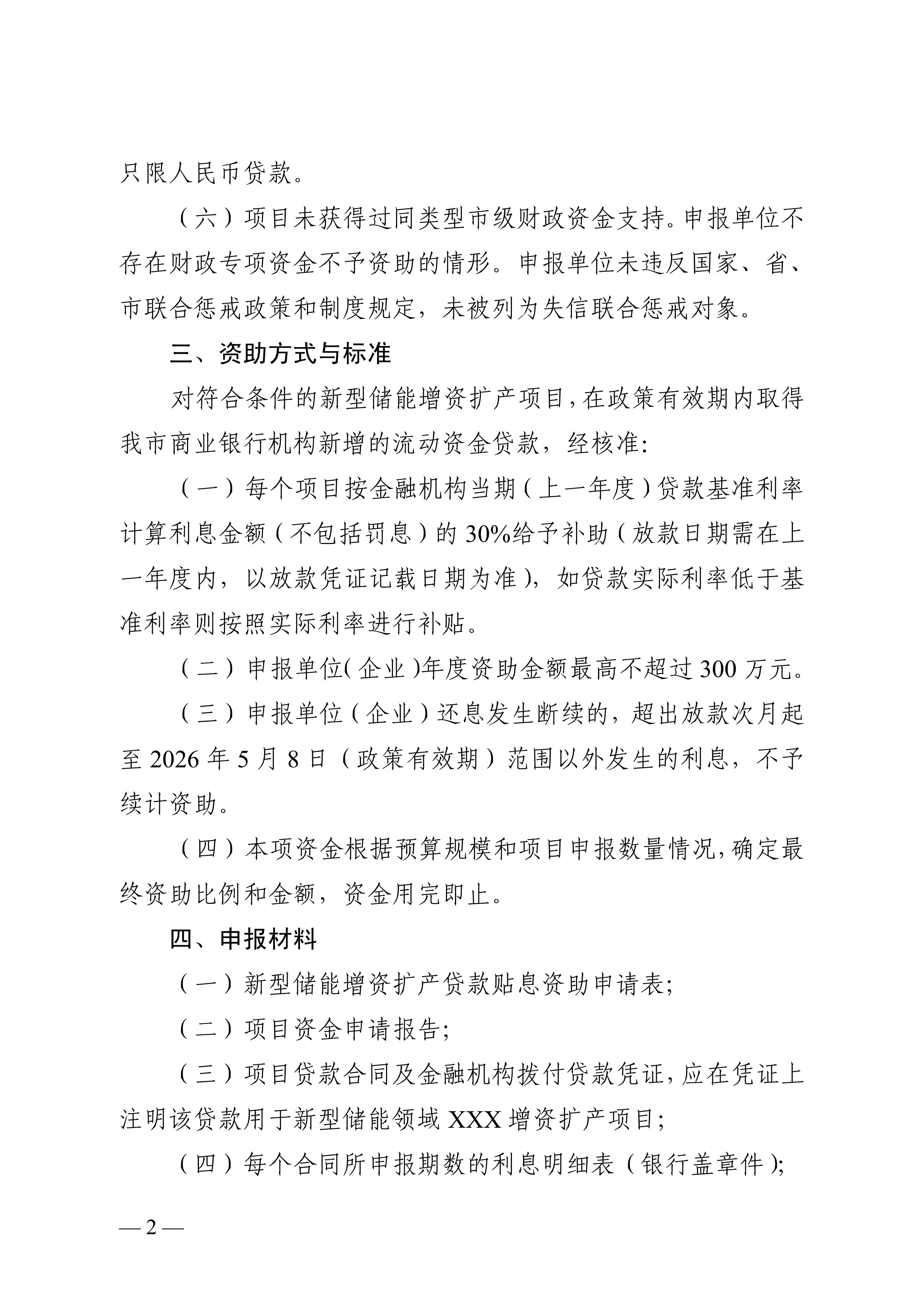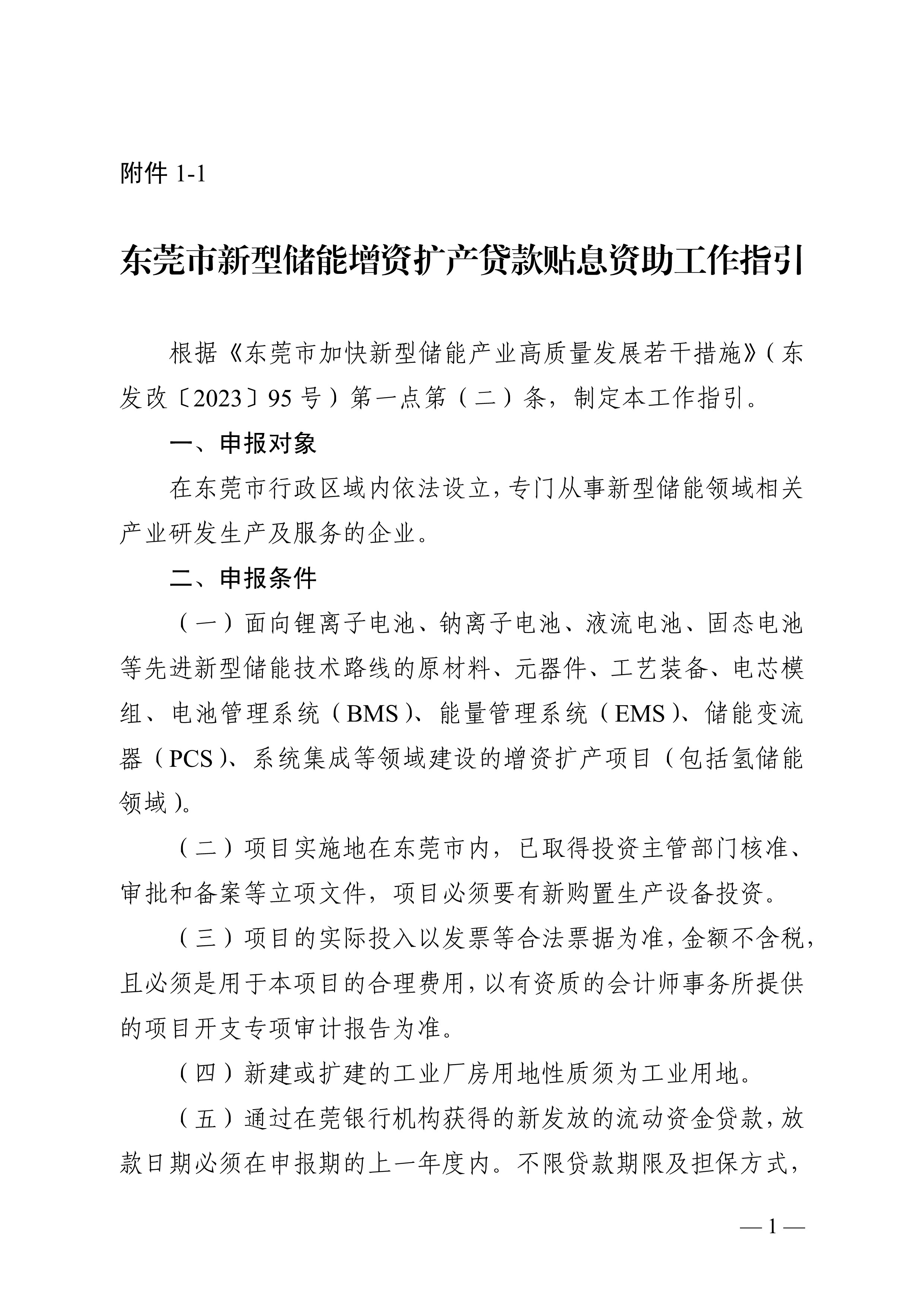 5月28日,廣東東莞發(fā)布2024年度新型儲能高質(zhì)量發(fā)展專項資金申報工作。面向鋰離子電池、鈉離子電池、液流電池、固態(tài)電池 等先進新型儲能技術(shù)路線的原材料、元器件、工藝裝備、電芯模 組、電池管理系統(tǒng)(BMS)、能量管理系統(tǒng)(EMS)、儲能變流 器(PCS)、系統(tǒng)集成等領(lǐng)域建設(shè)的增資擴產(chǎn)項目。申報單位(企業(yè))年度資助金額最高不超過300萬元。 面向高安全、低成本、長壽命新型儲能電池及儲能系 統(tǒng)發(fā)展需求布局建設(shè),且已獲得國家級或省級重點實驗室、工程 技術(shù)研究中心、工程研究中心、企業(yè)技術(shù)中心、產(chǎn)業(yè)創(chuàng)新中心等 立項(認定)。獲得國家部委認定的重點實驗室,給予一次性500萬元獎勵; 獲得國家部委認定的產(chǎn)業(yè)創(chuàng)新中心、工程研究中心,給予一次性 400 萬元獎勵;獲得國家部委認定的工程技術(shù)研究中心、企業(yè)技 術(shù)中心,給予一次性300萬元獎勵。獲得廣東省發(fā)展改革委認定 的工程研究中心,給予一次性200萬元獎勵。 面向歐盟、美國、日韓等國際市場,首次取得應(yīng)用于 新型儲能領(lǐng)域的電池產(chǎn)品(僅指電池包、電芯級產(chǎn)品)出口認證 證書,且符合附件中的支持方向要求。對應(yīng)用于新型儲能,且獲得海運運輸證書,成功通過 海外市場電池產(chǎn)品(僅指電池包、電芯級產(chǎn)品)認證并實現(xiàn)銷售 的電池新產(chǎn)品,按經(jīng)評審核定認證費用的50%給予資助,最高不 超過100萬元。 電池產(chǎn)品出口認證支持方向,電池產(chǎn)品出口應(yīng)用領(lǐng)域:家庭儲能、工商業(yè)儲能、便攜 式儲能; 二、認證項目:歐盟(IEC/EN62619、IEC/EN62133、 IEC/EN63056、IEC/EN62368、EN61000-6-1/3、EN61000-6-2/4)、 北美(UL1973、UL9540A、UL2743、FCCPart15B)、日本(JIS C8715-2、J62133)、韓國(KC62619、KC62133)、國際通用 UN38.3 等。 用戶側(cè)新型儲能示范項目,應(yīng)用場景包括工業(yè) 園區(qū)、大型企業(yè)、大數(shù)據(jù)中心、5G基站等高能耗場景,以 及光儲一體、“源網(wǎng)荷儲”一體化、光儲充一體化等融合發(fā) 展場景。項目采取示范認定制度,由市發(fā)展改革局在每 年8—9月組織認定,通過專家評審擇優(yōu)納入示范項目庫, 申報單位須先自行投入資金組織實施項目。次年組織補貼 申報時,對獲得認定、通過核查、完成驗收的示范項目, 自投運次月起,按經(jīng)核定的實際放電量,給予投資主體不 超過0.3 元/千瓦時的事后資助,補貼累計不超過2年,單 個項目累計補貼不超過300萬元。 東莞市搭建新型儲能公共服務(wù)平臺資助工作指引,面向新型儲能產(chǎn)業(yè)共性技術(shù)研發(fā)、技術(shù)成果轉(zhuǎn)化與推 廣、標準制定、檢驗檢測、安全預(yù)警等需求建設(shè)。項目采用認定程序,由市發(fā)展改革局在每年8—9月 組織認定,通過專家評審擇優(yōu)納入扶持項目庫,項目單位須先自 行投入資金組織實施項目,在項目通過核查、完成驗收后,采取 事后資助形式,按其設(shè)備購置費等平臺建設(shè)費用的30%給予不超 過300萬元資助。 原文如下: 關(guān)于開展2024年度東莞市新型儲能高質(zhì)量發(fā)展專項資金申報工作的通知 各有關(guān)企業(yè): 根據(jù)《東莞市加快新型儲能產(chǎn)業(yè)高質(zhì)量發(fā)展若干措施》(東發(fā)改〔2023〕95號)《東莞市新型儲能產(chǎn)業(yè)高質(zhì)量發(fā)展專項資金管理辦法》(東發(fā)改〔2023〕187號)及相關(guān)工作指引,現(xiàn)就組織開展我市2024年度東莞市新型儲能高質(zhì)量發(fā)展專項資金申報工作的有關(guān)事項通知如下: 一、申報范圍 (一)資金的支持范圍主要包括:增資擴產(chǎn)貸款貼息資助、創(chuàng)新載體建設(shè)獎勵、電池產(chǎn)品出口認證資助、示范應(yīng)用資助、公共服務(wù)平臺資助5個方面; (二)資金申報單位的產(chǎn)品、項目屬于新型儲能產(chǎn)業(yè)領(lǐng)域(不包含新能源汽車、消費電子等領(lǐng)域)。 二、基本條件 2024年度資金申報面向時間區(qū)間為2024年1月1日至2024年12月31日,申報企業(yè)、項目須滿足以下條件: (一)資金申報單位須在東莞市行政區(qū)域內(nèi)依法設(shè)立,專門從事新型儲能領(lǐng)域相關(guān)產(chǎn)業(yè)研發(fā)生產(chǎn)及服務(wù)的相關(guān)企業(yè)、事業(yè)單位、社會團體或民辦非企業(yè)等機構(gòu)(示范應(yīng)用資助除外)。具體各項申報條件詳見附件1。 (二)資金申報單位應(yīng)具有項目實施的基礎(chǔ)條件和保障能力,具有健全的組織機構(gòu)、完善的財務(wù)會計制度。 (三)項目未獲得過同類型市級財政資金支持,不存在市財政專項資金不予資助的情形,未被列未失信聯(lián)合懲戒對象。市政府或相關(guān)部門另有文件規(guī)定的,從其規(guī)定。 三、申報流程 (一)申報。本次申報為線上申報,時間為2025年6月3日至2025年6月23日下午5:30,逾期不再接受申報。申報單位可登陸“企莞家”企業(yè)綜合服務(wù)平臺,點擊“我要享政策”菜單,搜索“新型儲能高質(zhì)量發(fā)展專項資金申報工作”,選擇對應(yīng)欄目(共有“增資擴產(chǎn)貸款貼息資助項目資金申請、示范應(yīng)用資助項目資金申請、電池產(chǎn)品出口認證資助項目資金申請、創(chuàng)新載體建設(shè)獎勵項目資