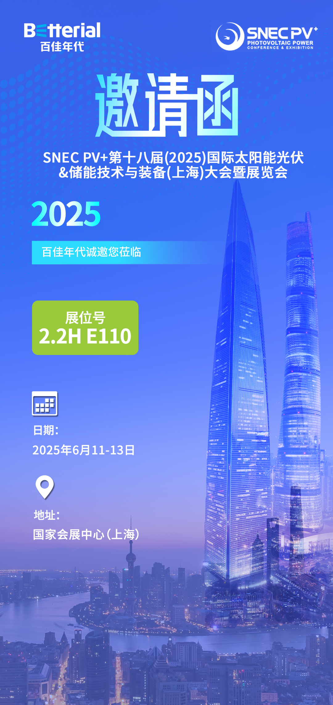 Betterial?沙漠光伏專用膠膜已順利通過TüV萊茵、CPVT等權(quán)威機(jī)構(gòu)認(rèn)證,并入駐CPVT西北地區(qū)實(shí)證基地,進(jìn)行長期戶外可靠性驗(yàn)證。未來百佳年代將持續(xù)關(guān)注沙漠光伏封裝技術(shù)可靠性研究,助力沙漠光伏組件在極端環(huán)境下可靠性與發(fā)電效率提升,積極助推光伏電站進(jìn)一步向極端環(huán)境拓展,為我國沙戈荒地區(qū)能源轉(zhuǎn)型與生態(tài)治理戰(zhàn)略貢獻(xiàn)力量。 了解更多百佳年代封裝技術(shù)方案,6月11-13日SNEC展會期間,歡迎蒞臨百佳年代展臺 2.2H-E110交流洽談。