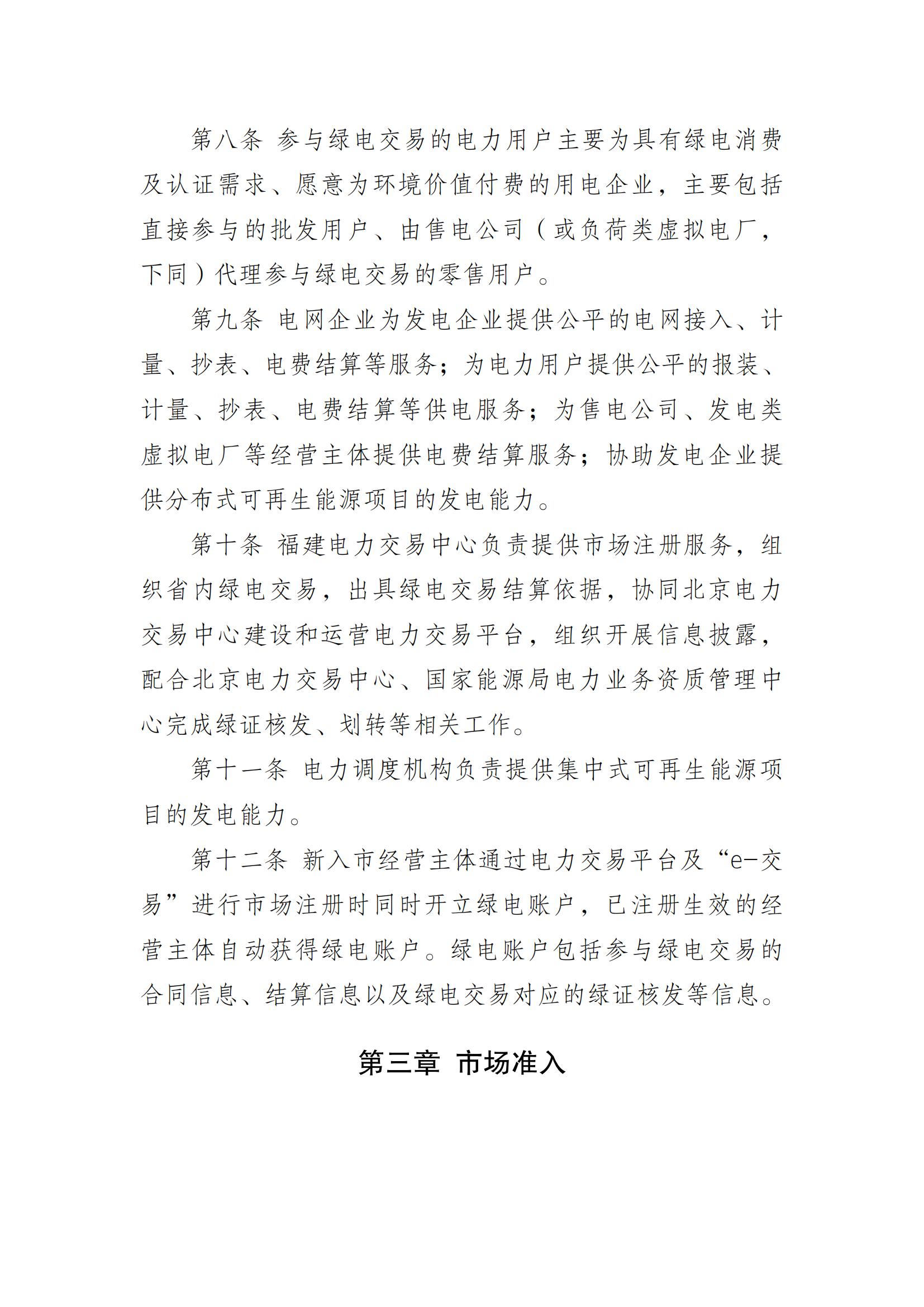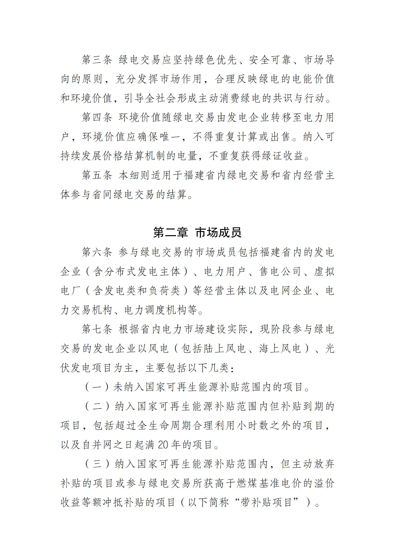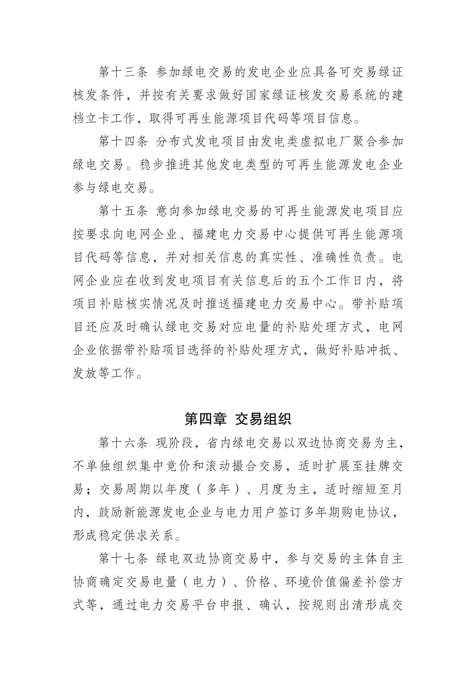 6月20日,福建電力交易中心印發(fā)《福建省綠色電力交易實施細則 (2025年修訂版)》。根據(jù)省內(nèi)電力市場建設(shè)實際,現(xiàn)階段參與綠電交易的發(fā)電企業(yè)以風(fēng)電(包括陸上風(fēng)電、海上風(fēng)電)、光伏發(fā)電項目為主,主要包括以下幾類:未納入國家可再生能源補貼范圍內(nèi)的項目;納入國家可再生能源補貼范圍內(nèi)但補貼到期的項目,包括超過全生命周期合理利用小時數(shù)之外的項目,以及自并網(wǎng)之日起滿20年的項目;納入國家可再生能源補貼范圍內(nèi),但主動放棄補貼的項目或參與綠電交易所獲高于燃煤基準電價的溢價收益等額沖抵補貼的項目。 參與綠電交易的電力用戶主要為具有綠電消費及認證需求、愿意為環(huán)境價值付費的用電企業(yè),主要包括直接參與的批發(fā)用戶、由售電公司(或負荷類虛擬電廠)代理參與綠電交易的零售用戶。 參加綠電交易的發(fā)電企業(yè)應(yīng)具備可交易綠證核發(fā)條件,并按有關(guān)要求做好國家綠證核發(fā)交易系統(tǒng)的建檔立卡工作,取得可再生能源項目代碼等項目信息。 分布式發(fā)電項目由發(fā)電類虛擬電廠聚合參加綠電交易。穩(wěn)步推進其他發(fā)電類型的可再生能源發(fā)電企業(yè)參與綠電交易。 詳情如下: