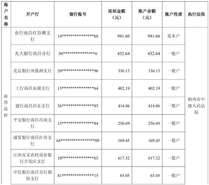 6月27日,*ST沐邦發(fā)布公告稱,公司于近日獲悉,公司部分銀行賬戶及募集資金專戶資金被凍結(jié)。 經(jīng)公司自查,本次銀行賬戶被凍結(jié),原因主要系中國(guó)電子系統(tǒng)工程第三建設(shè)有限公司(以下簡(jiǎn)稱“中電三”)與公司及公司子公司廣西沐邦高科新能源有限公司(以下簡(jiǎn)稱“廣西沐邦”)的訴訟。具體情況如下:2025年1月17日,廣西沐邦與原告中電三簽訂了《廣西沐邦高科10GWN型高效光伏電池項(xiàng)目合同》,合同金額2億元。合同簽訂后,中電三按照合同約定履行施工義務(wù)。2025年4月26日,廣西沐邦因資金問(wèn)題通知施工方撤場(chǎng)。截至目前,廣西沐邦向中電三支付了2,000.00萬(wàn)元款項(xiàng),剩余款項(xiàng)尚未支付。中電三向梧州市中級(jí)人民法院提起訴訟,訴訟金額為59,285,923.33元,公司承擔(dān)連帶責(zé)任。 截至本公告披露日,公司銀行賬戶累計(jì)被凍結(jié)12,443.72萬(wàn)元,其中募集資金專戶被凍結(jié)12,429.20萬(wàn)元(存在多輪凍結(jié)) 具體情況如下:
