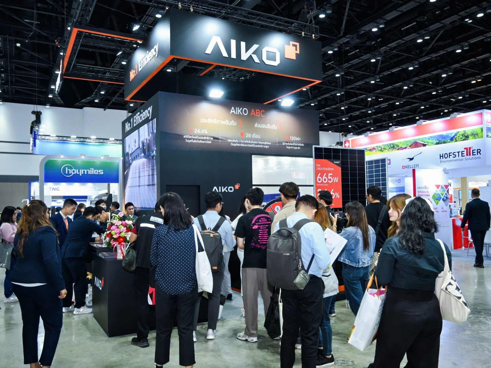 在愛旭的展臺(tái)現(xiàn)場(chǎng),光伏的前沿創(chuàng)新觸手可及。適配地面場(chǎng)景的“北極星”、水面場(chǎng)景的“天狼星”、工商業(yè)場(chǎng)景的“慧星”系列、戶用場(chǎng)景的“黑洞”系列及第三代“滿屏”ABC組件等產(chǎn)品悉數(shù)登場(chǎng),構(gòu)建起覆蓋電站全場(chǎng)景的完整產(chǎn)品矩陣。 面對(duì)泰國(guó)充沛的光照環(huán)境,愛旭ABC組件以全球領(lǐng)先的量產(chǎn)效率與可靠性能完美應(yīng)對(duì)。 同等面積下ABC組件功率較TOPCon高出6-10%,結(jié)合80±5%的高雙面率,綜合發(fā)電量顯著優(yōu)于TOPCon組件。 面對(duì)熱帶地區(qū)復(fù)雜多變的光照條件,ABC組件獨(dú)有的陰影發(fā)電優(yōu)化技術(shù),能有效保障電量穩(wěn)定輸出,并規(guī)避熱斑導(dǎo)致的火災(zāi)風(fēng)險(xiǎn)。同時(shí),ABC組件具備更低衰減、更優(yōu)溫度系數(shù)、卓越的高溫抑制能力和抗隱裂特性,在泰國(guó)高溫等極端環(huán)境下尤為關(guān)鍵,為電站全生命周期提供了更高的發(fā)電穩(wěn)定性、可靠性與安全保障。