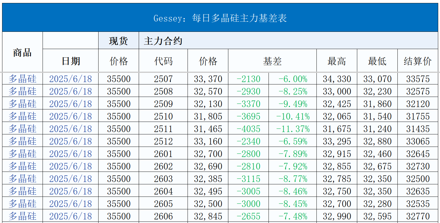 6月18日多晶硅主力基差表2025-06-18 18:30瀏覽數(shù):177次