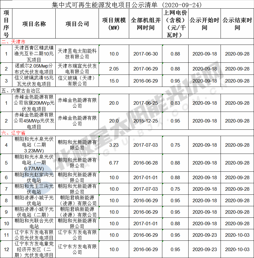 以下為本次公示清單中光伏項(xiàng)目部分: (注:本次公示的個(gè)別項(xiàng)目與9月16日公示項(xiàng)目重合,點(diǎn)擊查看9月16日公示清單→105個(gè)光伏項(xiàng)目超2.7GW 國(guó)網(wǎng)公示最新可再生能源補(bǔ)貼項(xiàng)目清單)