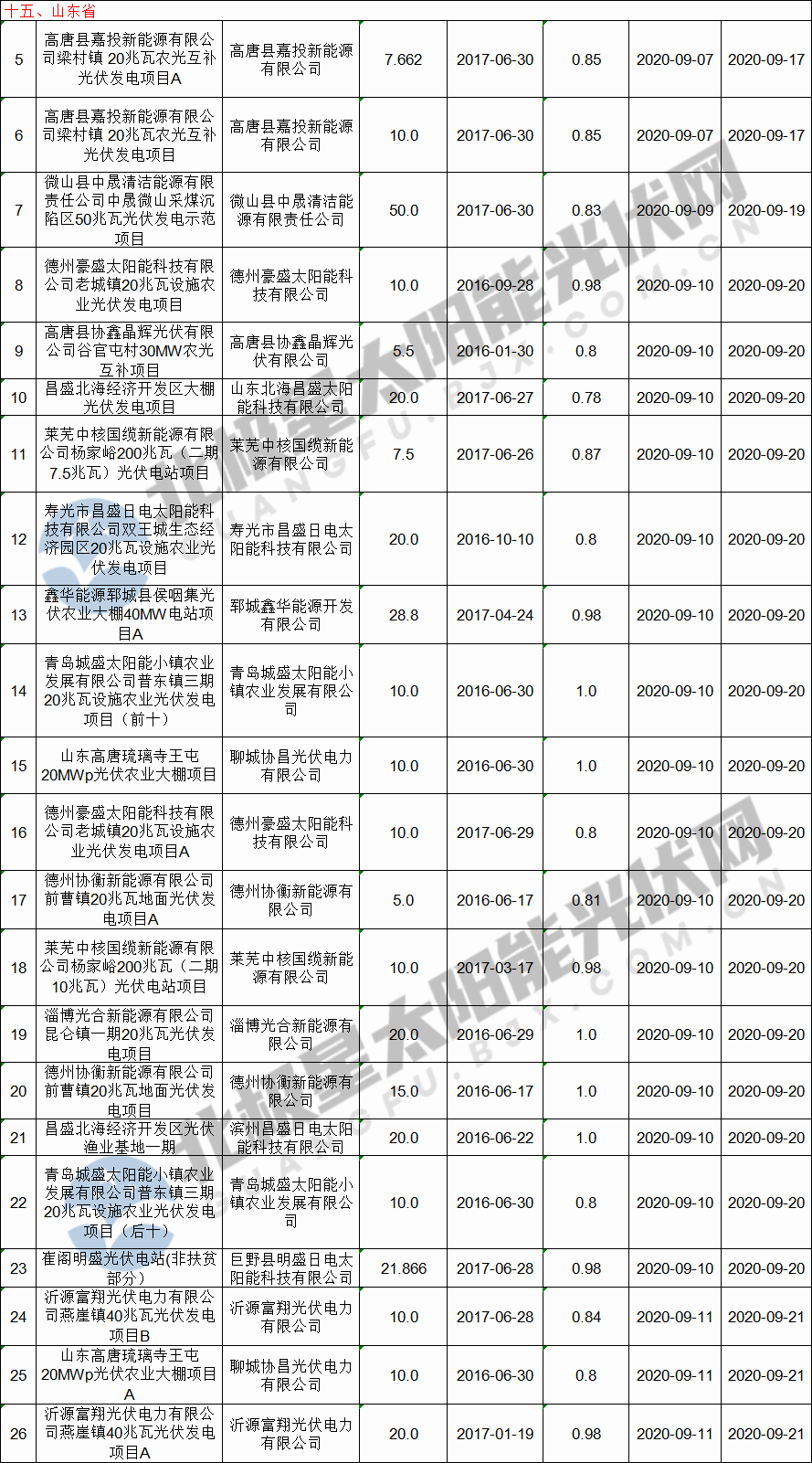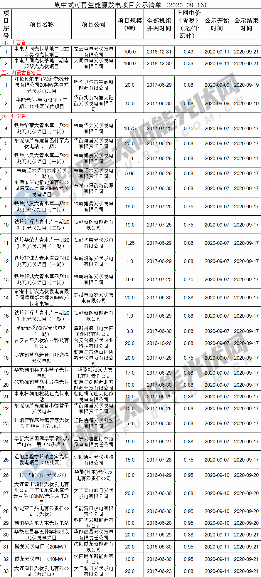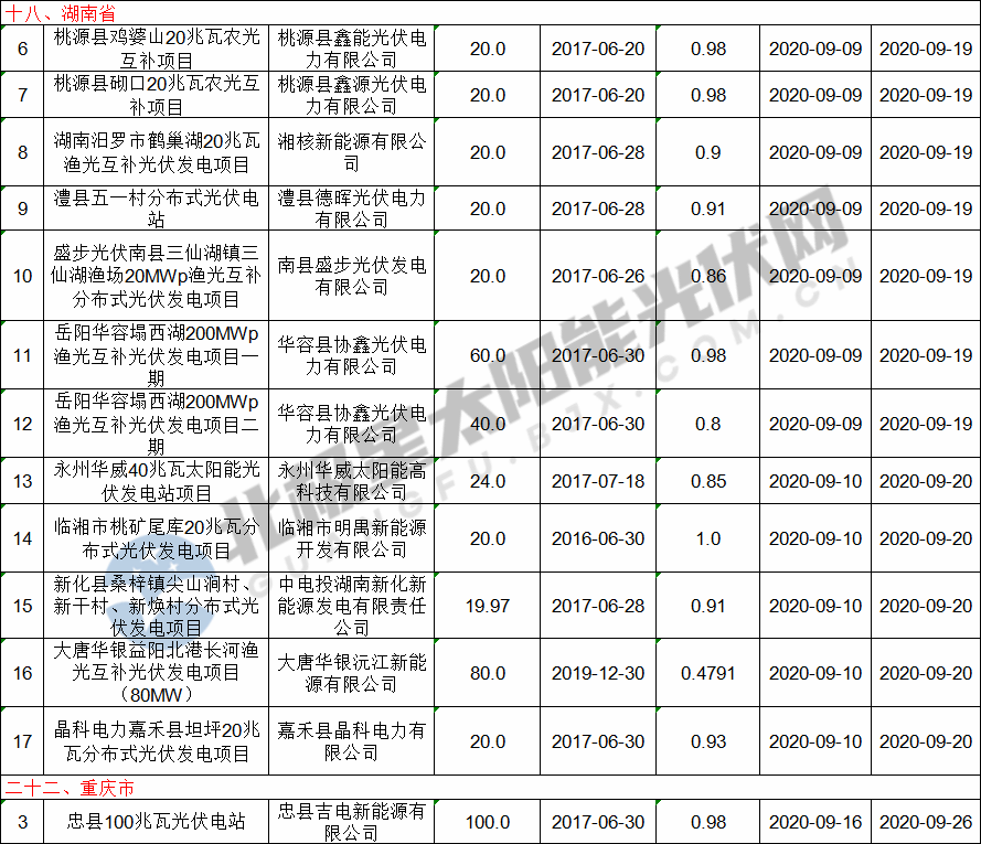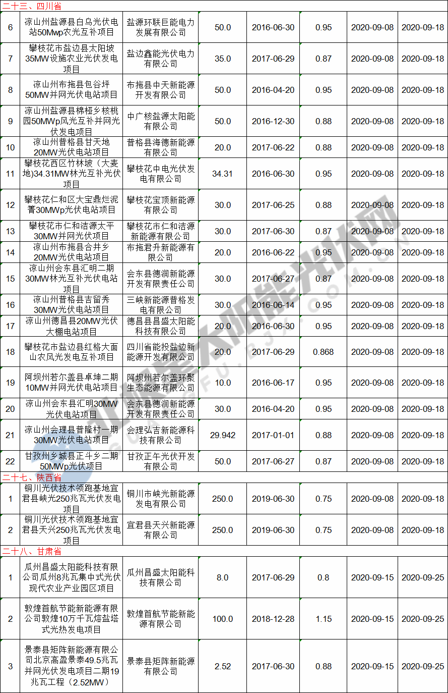 以下為本次公示清單中光伏項(xiàng)目部分: