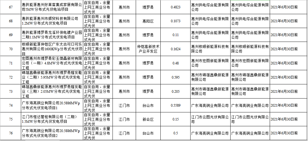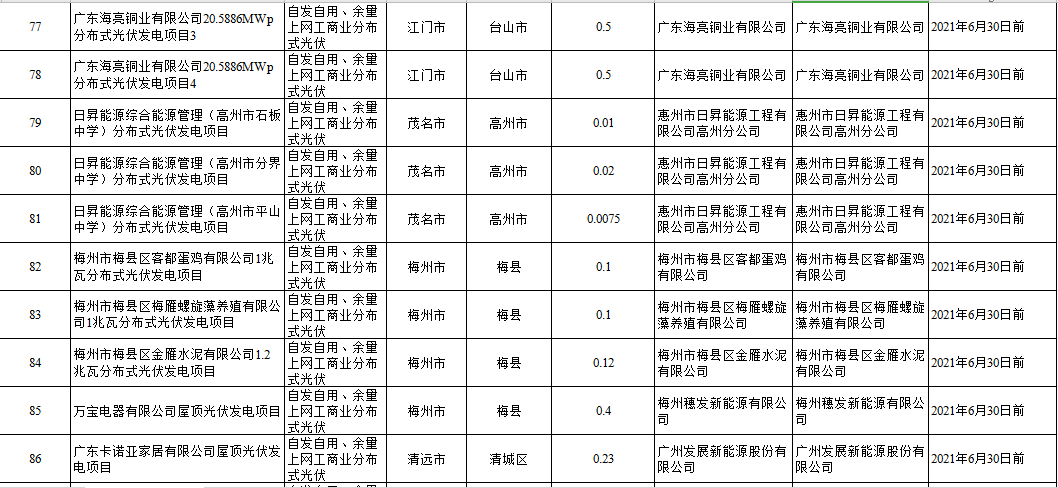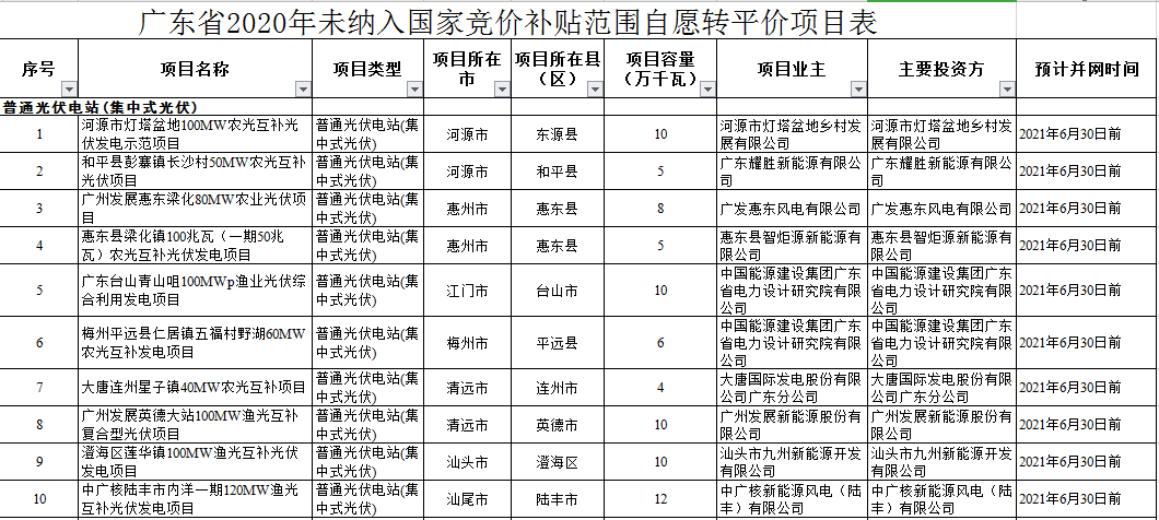 近日,廣東省能源局發(fā)布關(guān)于報(bào)送2020年自愿轉(zhuǎn)平價(jià)光伏項(xiàng)目的報(bào)告。據(jù)公告顯示,共有103個(gè)項(xiàng)目總裝機(jī)規(guī)模約136.78萬(wàn)千瓦申請(qǐng)轉(zhuǎn)平價(jià),另有1個(gè)2019年納入國(guó)家競(jìng)價(jià)補(bǔ)貼范圍自愿轉(zhuǎn)平價(jià)項(xiàng)目,共計(jì)104個(gè)項(xiàng)目總裝機(jī)規(guī)模約141.78萬(wàn)千瓦。 廣東省能源局關(guān)于報(bào)送2020年自愿轉(zhuǎn)平價(jià)光伏項(xiàng)目的報(bào)告 粵能新能〔2020〕61號(hào) 國(guó)家能源局: 《國(guó)家能源局綜合司關(guān)于公布2020年光伏發(fā)電項(xiàng)目國(guó)家補(bǔ)貼競(jìng)價(jià)結(jié)果的通知》(國(guó)能發(fā)新能〔2020〕17號(hào))提出,鼓勵(lì)未納入競(jìng)價(jià)補(bǔ)貼范圍的申報(bào)項(xiàng)目在企業(yè)自愿的基礎(chǔ)上轉(zhuǎn)為平價(jià)上網(wǎng)項(xiàng)目。我省按要求組織開(kāi)展了2020年未納入國(guó)家競(jìng)價(jià)補(bǔ)貼范圍項(xiàng)目自愿轉(zhuǎn)平價(jià)申報(bào)工作,經(jīng)各地市初審上報(bào)、省審核把關(guān),在我省未納入2020年國(guó)家競(jìng)價(jià)補(bǔ)貼范圍的276個(gè)項(xiàng)目總裝機(jī)規(guī)模約160.6萬(wàn)千瓦中,共有103個(gè)項(xiàng)目總裝機(jī)規(guī)模約136.78萬(wàn)千瓦(見(jiàn)附件1)申請(qǐng)轉(zhuǎn)平價(jià),另有1個(gè)2019年納入國(guó)家競(jìng)價(jià)補(bǔ)貼范圍自愿轉(zhuǎn)平價(jià)項(xiàng)目(見(jiàn)附件2),共計(jì)104個(gè)項(xiàng)目總裝機(jī)規(guī)模約141.78萬(wàn)千瓦,特此報(bào)告。 附件: 1.廣東省2020年未納入國(guó)家競(jìng)價(jià)補(bǔ)貼范圍自愿轉(zhuǎn)平價(jià)項(xiàng)目表 2.廣東省2019年納入國(guó)家競(jìng)價(jià)補(bǔ)貼范圍自愿轉(zhuǎn)平價(jià)項(xiàng)目表 廣東省能源局 2020年8月7日
