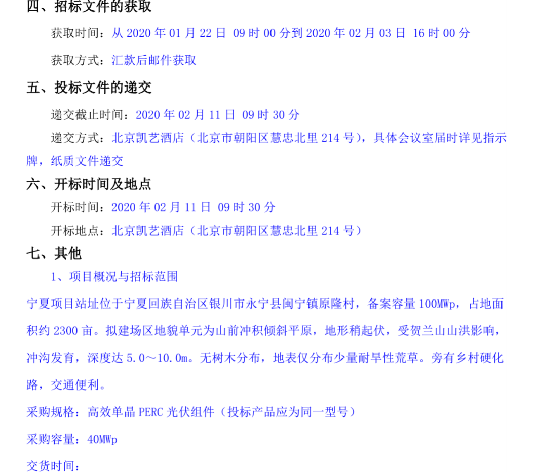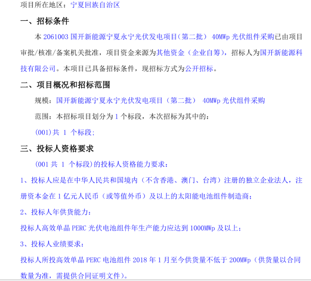 國開新能源寧夏永寧光伏項目(第二批)40MWp光伏組件采購招標(biāo)公告2020-01-31 21:45瀏覽數(shù):5次