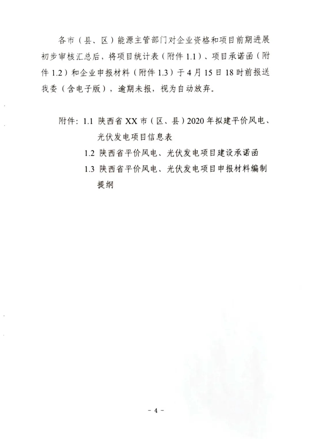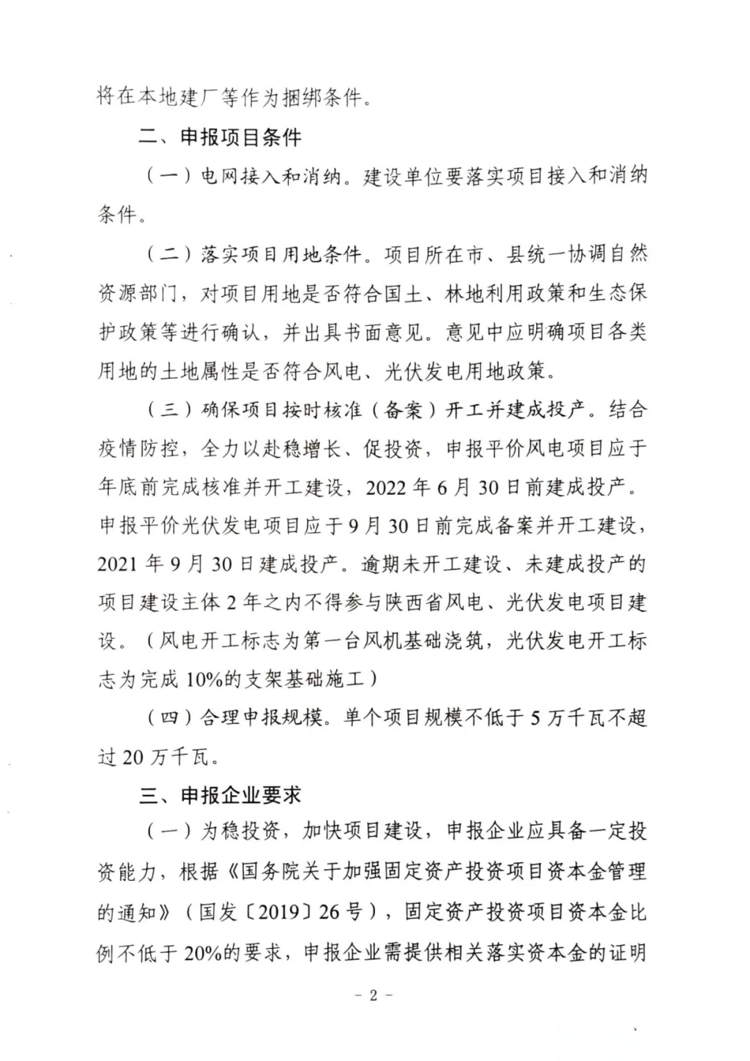 3月16日,陜西發(fā)布了2020年光伏平價、競價項目的文件通知,正式啟動相關(guān)申報工作,要求參考領(lǐng)跑者項目的經(jīng)驗,從開工時間、并網(wǎng)時間、資本金證明、懲罰措施以及投資主體申報規(guī)模等各個維度明確了相關(guān)規(guī)定,力求保障2020年陜西省光伏、風(fēng)電項目的順利有序推進(jìn)。 根據(jù)文件,平價光伏項目應(yīng)于9月30日前完成備案并開工建設(shè),2021年9月30日建成投產(chǎn),逾期未開工、未投產(chǎn)的項目建設(shè)主題2年內(nèi)不得參與陜西省的光伏項目,且單個項目不低于50MW,不超過200MW;競價項目必須為2020年新建項目,且需于2020年12月31日前全容量完成并網(wǎng),每逾期一個季度電價補貼降低0.01元/千瓦時,逾期兩個季度取消補貼資格。 此外,文件要求平價、競價申報企業(yè)均需按照4元/W提供項目資本金不低于20%的資金證明,同一投資主體最多只能申報2個項目,股東方不超過2家。平價項目申報截止日期為4月15日,競價為6月1日。