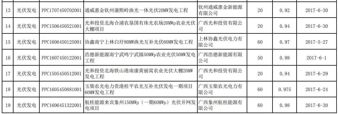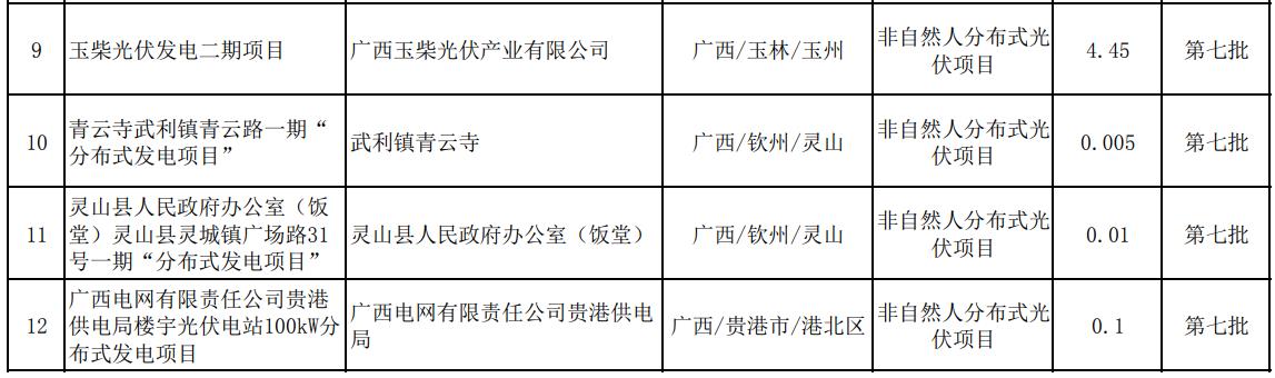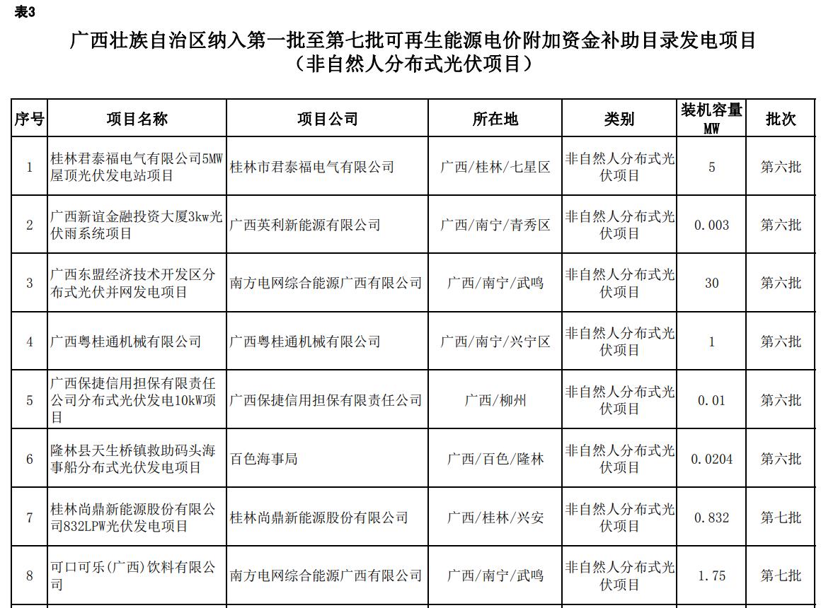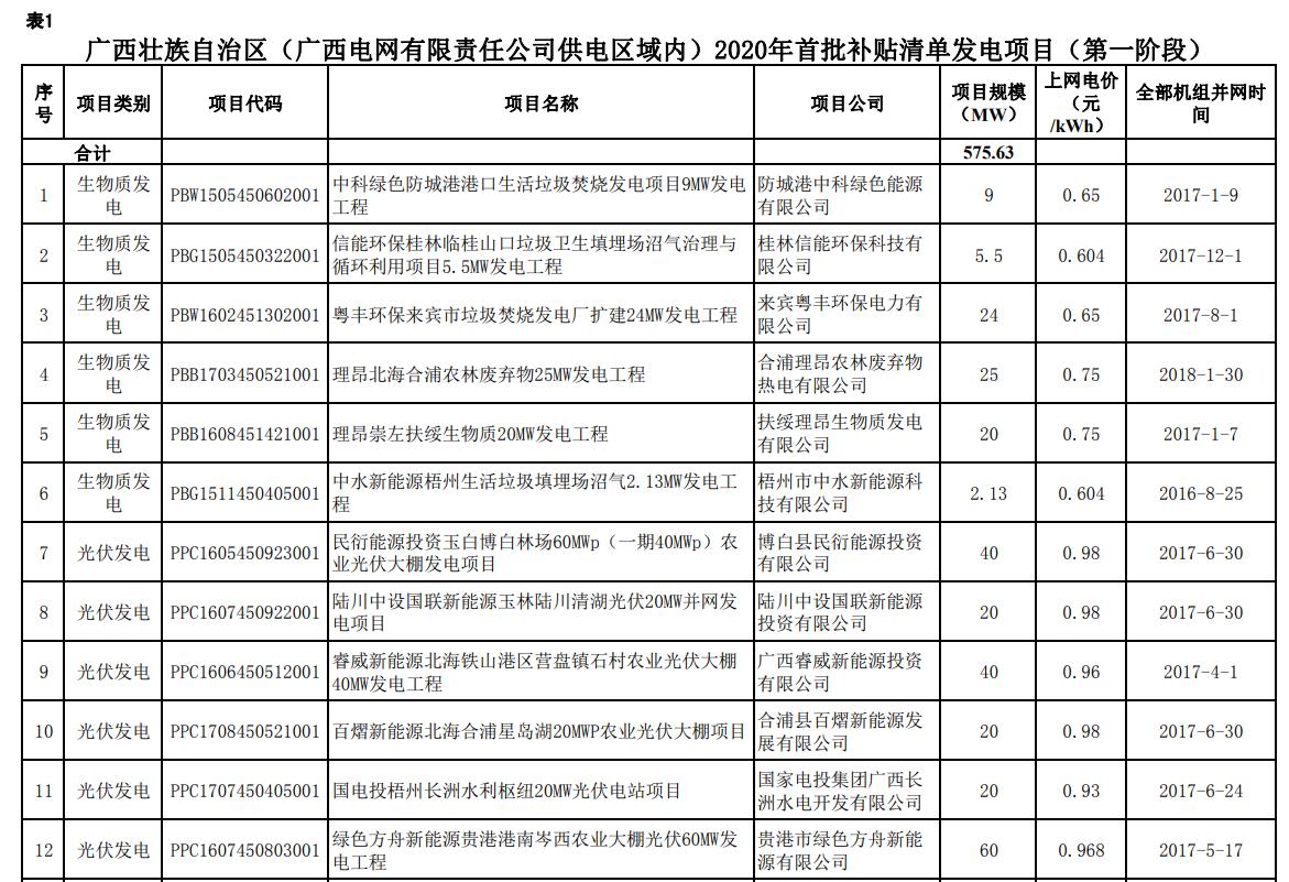 5月13日,廣西電網(wǎng)公布了經(jīng)審核通過的首批可再生能源發(fā)電項目補貼清單(第一階段),據(jù)統(tǒng)計,納入首批可再生能源補貼項目清單的光伏項目共計490MW,納入前七批可再生能源電價附加資金補助目錄的光伏項目共計120MW,納入前七批的非自然人分布式光伏項目共計43.4774MW。 詳情如下: 廣西壯族自治區(qū)(廣西電網(wǎng)有限責(zé)任公司供電區(qū)域內(nèi))首批可再生能源發(fā)電項目補貼清單(第一階段) 根據(jù)《財政部辦公廳關(guān)于開展可再生能源發(fā)電補貼項目清單審核有關(guān)工作的通知》(財辦建〔2020〕6號)和《國家可再生能源信息管理中心關(guān)于可再生能源發(fā)電補貼項目清單申報與審核工作有關(guān)要求的公告》等文件要求,現(xiàn)對通過廣西壯族自治區(qū)能源局確認(rèn),國家可再生能源信息管理中心復(fù)核,公示期滿無異議的首批可再生能源發(fā)電項目補貼清單(第一階段)進(jìn)行公布。如有疑問,請聯(lián)系廣西電網(wǎng)有限責(zé)任公司。 聯(lián)系人:曾夢強 聯(lián)系電話:0771-5693347