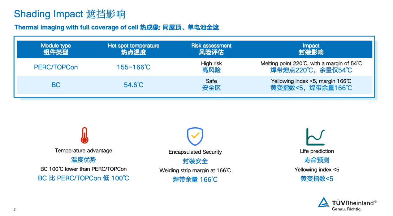 9月26日,隆基綠能(以下簡稱“隆基”)在西安召開Hi-MO X10三防組件實證發(fā)布會。經國家太陽能光伏產品質量檢驗檢測中心(CPVT)權威檢測,隆基Hi-MO X10三防組件成為全球首款官方認可的“三防組件”。 此次發(fā)布會顛覆行業(yè)傳統,首次集結權威專家、組件廠家、終端業(yè)主三大陣營同臺,通過國家太陽能光伏產品質量檢驗檢測中心(CPVT)、德國萊茵TüV集團(以下簡稱“TüV萊茵”)、北京鑒衡認證中心有限公司(以下簡稱“鑒衡”)的聯合實證,隆基全球實證平臺的首次公開,以及近十位真實業(yè)主的現身說法,共同為光伏組件的真實價值評估樹立了全新標桿。 全球首個!Hi-MO X10“三防”組件功能獲權威檢測 CPVT通過嚴苛的實驗室測試與戶外實證相結合的方式,對隆基Hi-MO X10的“防起火、防遮擋、防積灰”三大核心性能進行了系統性驗證。 綜合結果指出,隆基Hi-MO X10三防組件在抑制熱斑溫升、降低遮擋功率損失以及抵抗積灰影響三個維度上,性能均顯著優(yōu)于TOPCon組件。 遮擋是光伏電站最常見的隱患之一,尤其在分布式屋頂項目中,灰塵、鳥糞或局部陰影易引發(fā)熱斑起火,不僅威脅安全,還導致功率急劇衰減。實驗室數據顯示,在1000W/m2輻照下,“三防組件”的熱斑穩(wěn)定溫度比TOPCon組件低約72℃。 在防遮擋測試中,部分遮擋(如50%遮擋單塊電池)情況下,“三防組件”的平均功率損失為10.15%,而 TOPCon 組件的平均功率損失為36.48%。 在戶外模擬真實遮擋環(huán)境下,“三防組件”表現出卓越的發(fā)電優(yōu)勢。在模擬女兒墻遮擋的場景中,其單瓦發(fā)電量比TOPCon組件高出2.53% ;而在模擬樹葉遮擋的場景下,其單瓦發(fā)電量更是高于TOPCon組件47.12% 。 在模擬容易積灰的5°小傾角安裝條件下,“三防組件”的單瓦發(fā)電量比TOPCon組件高出2.28% 。這得益于其獨特的防積灰邊框設計,能有效減少灰塵附著帶來的發(fā)電損失 。此外,測試還發(fā)現,憑借隆基“三防組件”優(yōu)異的低溫度系數特性,“三防組件”的平均工作溫度比TOPCon組件低約1.5℃,進一步提升了發(fā)電效率。 這些基于多場景、可復現的測試,為Hi-MO X10“三防”性能的有效性提供了強有力的科學數據支撐。 三大權威機構共證BC技術優(yōu)勢 此次發(fā)布會的一大亮點,在于CPVT、TüV萊茵、鑒衡三大權威機構的聯合發(fā)聲。他們分別從安全性、全場景發(fā)電收益等不同維度,對以Hi-MO X10為代表的BC技術組件進行了獨立、嚴謹且全面的測評。盡管測試場景與方法各有側重,但最終結論高度一致。 綜合結果表明,遮擋場景下,BC技術全面勝出,在安全性和發(fā)電性能上擁有壓倒性優(yōu)勢;全場景發(fā)電能力上,不論實驗室測試還是戶外實證,不論何種輻照度亦或全天任意時段,BC組件均保持綜合領先,穩(wěn)定超越TOPCon組件。 TüV萊茵指出:在場地環(huán)境因素中,陰影遮擋和灰塵污染是造成發(fā)電量損失的主要元兇。通過對市場三大技術路線(PERC、TOPCon、BC)進行遮擋測試及熱斑風險的橫向測評,結果顯示,BC技術路線產品的熱點溫度僅為54.6℃,遠低于PERC的155.8℃和TOPCon的166.2℃所帶來的高風險。 而隆基的HPBC 2.0產品,更是在單點、多點、長/短邊及斜對角等多種最典型的遮擋場景下,功率輸出優(yōu)于其他常規(guī)技術組件。 BC技術不僅更加安全,其功率輸出也優(yōu)于其他技術路線。鑒衡在其位于海南三亞的實證基地上,對比了不同安裝條件下HPBC 2.0組件和TOPCon組件的發(fā)電能力表現,設立了靜態(tài)遮擋陣列和未遮擋陣列。在整個實證周期內,HPBC 2.0組件在靜態(tài)遮擋的情況下比TOPCon組件的單瓦發(fā)電量高50.92%。 在發(fā)電收益這個核心價值上,鑒衡提供了更全面的全場景、多維度實證測試數據。 比如從輻照度來看,無遮擋工況下HPBC 2.0組件在輻照度900W/m2~1000W/m2時,對比TOPCon組件單瓦發(fā)電增益最高,達到2.36%;靜態(tài)遮擋工況下,在輻照度700W/m2~800W/m2時增益最大,達到52.12%。 而在不同典型天氣條件下,HPBC 2.0組件仍能保持高于TOPCon組件的穩(wěn)定發(fā)電量。陰天無遮擋時,HPBC 2.0組件單瓦發(fā)電量增益1.96%。其中,在16 ~17時增益最大,為4.42%。陰天靜態(tài)遮擋時,HPBC 2.0組件在11~12時增益最大,為58.27%。晴天無遮擋時,HPBC 2.0組件單瓦發(fā)電量增益3.08%。其中,在16~17時增益最大,為7.86%。晴天靜態(tài)遮擋時,HPBC 2.0組件在17~18時增益最大,為66.54%。