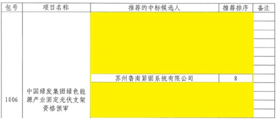 近日,中國綠發(fā)投資集團有限公司 2025 年第 11 批集中采購招標(biāo)項目推薦中標(biāo)候選人公示正式發(fā)布。在競爭激烈的 “綠色能源產(chǎn)業(yè)固定光伏支架資格預(yù)審”(包 1006)環(huán)節(jié),蘇州魯南緊固系統(tǒng)有限公司憑借深厚的技術(shù)積淀、扎實的項目業(yè)績與規(guī)范的投標(biāo)響應(yīng),成功突圍,位列推薦中標(biāo)候選人第 8 名,正式獲得與中國綠發(fā)集團開展長期綠色能源合作的核心準(zhǔn)入資格,為深耕國內(nèi)央企光伏配套市場奠定關(guān)鍵基礎(chǔ)。 中國綠發(fā)集團在全國范圍內(nèi)布局大量光伏、風(fēng)電等清潔能源項目,此次通過中國綠發(fā)集團光伏支架資格預(yù)審,對蘇州魯南而言具有里程碑意義。蘇州魯南將以此為契機,進一步擴大國內(nèi)大型綠色能源工程建設(shè)市場份額與行業(yè)影響力! 另一方面,這也是對魯南公司技術(shù)與服務(wù)體系的再次權(quán)威背書。作為中國綠發(fā)推薦的中標(biāo)候選人,蘇州魯南的產(chǎn)品品質(zhì)與項目服務(wù)能力將獲得更多行業(yè)客戶的認(rèn)可,為后續(xù)拓展更多央企、國企合作渠道打開新局面。