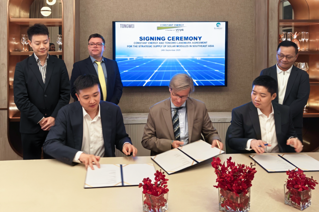 近日,通威與國際可再生能源開發(fā)商Constant Energy及泰國區(qū)域核心合作伙伴Sunday Solar Supply正式簽署三方戰(zhàn)略合作協(xié)議。此次合作將聚焦東南亞市場,共同推進高效太陽能組件的規(guī)?;瘧茫^(qū)域能源結構綠色轉型。 憑借在全球多個市場積累的產品適應性與項目實踐經驗,通威將依托領先的技術研發(fā)與成熟的制造經驗,為合作項目提供高效可靠的TNC組件,并確保及時交付與全周期服務支持,為當地光伏電站的建設提供有力保障。 作為通威在泰國及周邊市場的重要本地合作伙伴,Sunday Solar Supply憑借其對區(qū)域市場的深入理解與渠道能力,為本次三方協(xié)作搭建了堅實橋梁。首批合作項目之一——Constant Energy在馬來西亞政府第五期大型太陽能計劃(LSS)中中標的52兆瓦太陽能電站即將啟動建設,成為三方合作的首個示范案例。未來,合作范圍將拓展至泰國、越南、馬來西亞等更多東南亞國家,共同開發(fā)具有規(guī)模效益與示范效應的大型光伏項目。 此次戰(zhàn)略合作的達成,不僅是合作伙伴對通威組件產品競爭力的認可,也體現了通威以本地化合作推進全球能源轉型的決心。東南亞是通威重點布局的成長型市場,通威將持續(xù)投入創(chuàng)新資源,攜手伙伴為區(qū)域綠色發(fā)展注入持久動力。 在東南亞邁向太陽能規(guī)?;瘧玫年P鍵階段,通威將繼續(xù)以技術創(chuàng)新為驅動,協(xié)同產業(yè)鏈伙伴構建可持續(xù)能源生態(tài),共同迎接低碳未來。