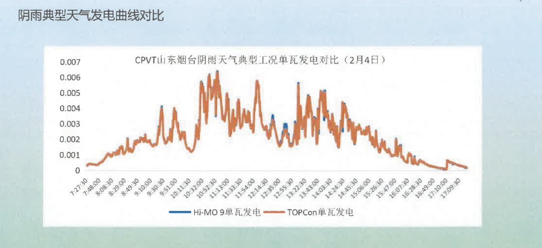 在弱光環(huán)境下的表現(xiàn)同樣出色。2025年2月4日陰雨天測(cè)試數(shù)據(jù)顯示,Hi-MO 9組件的單瓦發(fā)電增益達(dá)到0.98%,證明其在輻照度不足條件下仍能保持優(yōu)異的發(fā)電性能。