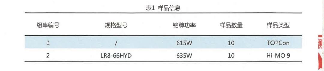 此次實(shí)證報(bào)告發(fā)布了BC與TOPCon兩種技術(shù)路線的實(shí)證結(jié)果。項(xiàng)目選用了隆基綠能BC二代技術(shù)Hi-MO 9組件產(chǎn)品10塊,TOPCon產(chǎn)品10塊,具體參數(shù)如下: