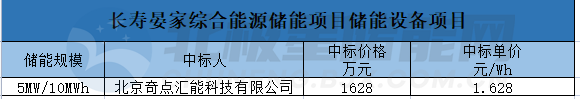 國網(wǎng)重慶綜合能源服務有限公司發(fā)布長壽晏家綜合能源儲能項目儲能設備中標候選人公示,公示中顯示第一候選人為北京奇點匯能科技有限公司中標價格為1628萬,中標單價為1.628元/Wh。