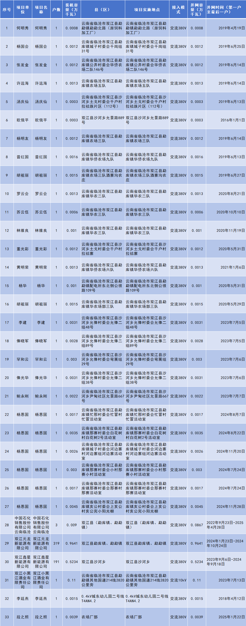 云南臨滄市公示分布式光伏存量項(xiàng)目認(rèn)定清單2025-10-21 15:14來源:gessey瀏覽數(shù):225次