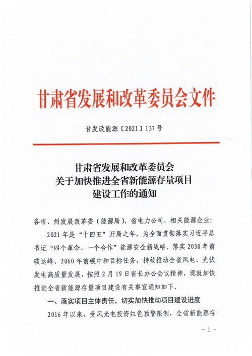 《關(guān)于加快推進(jìn)全省新能源存量項(xiàng)目建設(shè)工作》鼓勵(lì)配置5-20%儲(chǔ)能!甘肅發(fā)文推動(dòng)1.23GW光伏、4.75GW風(fēng)電建設(shè)進(jìn)度2021-03-29 16:14瀏覽數(shù):179次