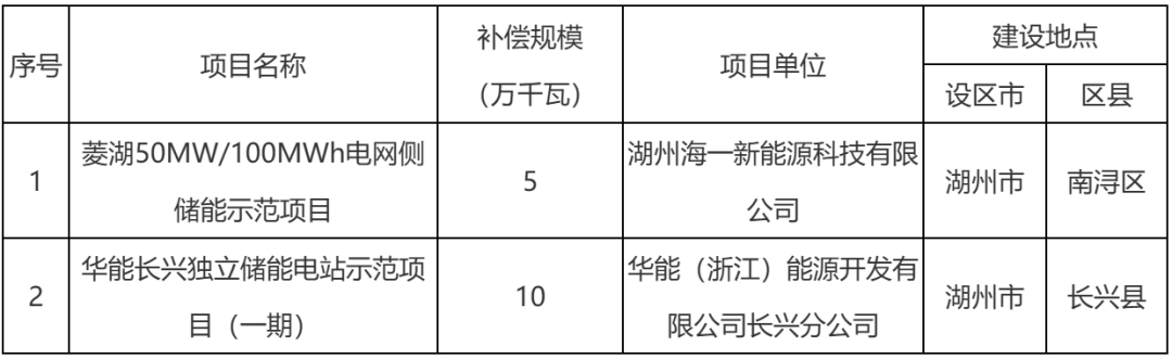 湖州市發(fā)展改革委關(guān)于公示湖州市電網(wǎng)側(cè)新型儲(chǔ)能容量補(bǔ)償項(xiàng)目清單的通知 為落實(shí)《關(guān)于浙江省加快新型儲(chǔ)能示范應(yīng)用的實(shí)施意見(jiàn)》(浙發(fā)改能源〔2021〕393號(hào))與《新型儲(chǔ)能容量補(bǔ)償資金分配方案》(浙發(fā)改能源〔2024〕111號(hào))要求,我委組織了電網(wǎng)側(cè)新型儲(chǔ)能容量補(bǔ)償項(xiàng)目申報(bào)與審核工作,并報(bào)送省級(jí)有關(guān)部門復(fù)核與審查。現(xiàn)將通過(guò)核查的容量補(bǔ)償項(xiàng)目名單與補(bǔ)償規(guī)模予以公示。 公示期從2025年10月30日至11月11日。如有異議,請(qǐng)?jiān)诠酒陂g通過(guò)傳真或電子郵件方式向我委反映,并具體列舉理由和相關(guān)證明材料。單位意見(jiàn)請(qǐng)加蓋單位公章并注明聯(lián)系方式,個(gè)人意見(jiàn)請(qǐng)注明真實(shí)姓名、身份證號(hào)碼和聯(lián)系方式,對(duì)匿名方式提出的異議不予受理。 聯(lián)系電話:0572-2399592 傳真:0572-2398779, 郵箱:826620821@qq.com。 附:湖州市電網(wǎng)側(cè)新型儲(chǔ)能容量補(bǔ)償項(xiàng)目清單