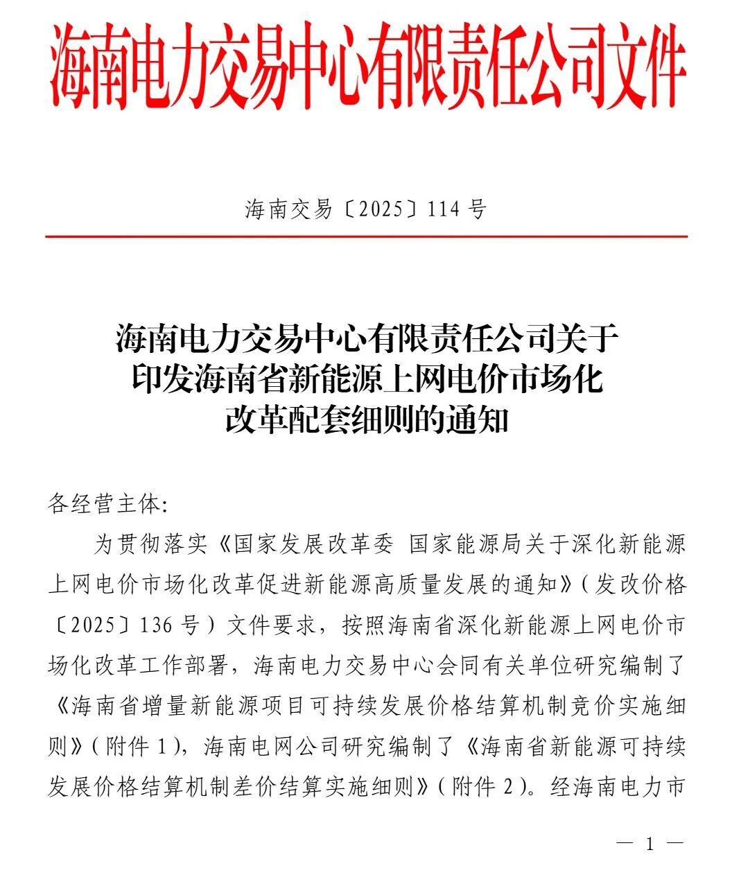 海南電力交易中心有限責(zé)任公司關(guān)于印發(fā)海南省新能源上網(wǎng)電價(jià)市場(chǎng)化改革配套細(xì)則的通知2025-11-04 16:30來(lái)源:gessey瀏覽數(shù):258次