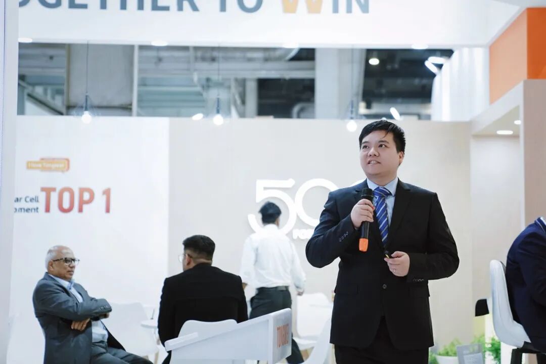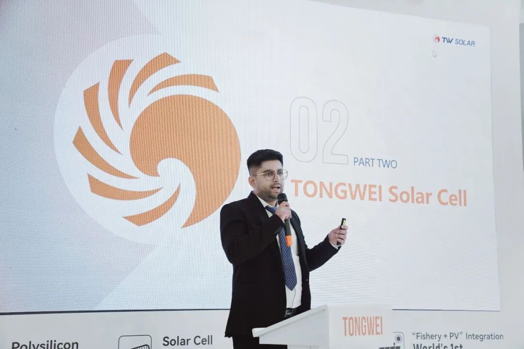 技術(shù)發(fā)聲 共探光伏新勢(shì)能 展會(huì)期間,通威團(tuán)隊(duì)圍繞“技術(shù)創(chuàng)新、質(zhì)量管理、效率提升”三大方向,面向行業(yè)伙伴進(jìn)行了系統(tǒng)分享。來(lái)自通威太陽(yáng)能平臺(tái)質(zhì)量部的海外技術(shù)支持專家工程師Ashish Verma、資深工程師潘高源、制程整合部副部長(zhǎng)鄭清吉分別以《通威高效電池技術(shù)與全球服務(wù)》《CTM影響因素及技術(shù)改善方案》《通威光伏技術(shù)創(chuàng)新與未來(lái)方向》為主題,深入介紹了通威全產(chǎn)業(yè)鏈布局、TNC系列電池產(chǎn)品、CTM功率增益路徑、TBC/THC及鈣鈦礦等技術(shù)路線的創(chuàng)新成果。 通過(guò)深入的案例講解與數(shù)據(jù)分析,三場(chǎng)宣講系統(tǒng)呈現(xiàn)了通威在電池工藝迭代、質(zhì)量保障與高效發(fā)電領(lǐng)域的核心優(yōu)勢(shì),吸引了眾多業(yè)內(nèi)代表駐足聆聽(tīng)與交流,現(xiàn)場(chǎng)氣氛熱烈。參會(huì)嘉賓紛紛表示,通威的創(chuàng)新能力與技術(shù)深度令人印象深刻,期待未來(lái)在更多市場(chǎng)領(lǐng)域深化合作。