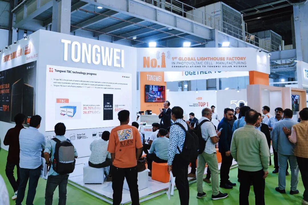 10月30日至11月1日,印度可再生能源展(Renewable Energy India Expo 2025)盛大開(kāi)展。通威攜TNC-G12、TNC-G12R、TNC-M10等系列高效電池產(chǎn)品精彩亮相,并圍繞技術(shù)創(chuàng)新、質(zhì)量管理與效率提升三大維度開(kāi)展主題宣講活動(dòng),全面展示通威在光伏電池制造領(lǐng)域的領(lǐng)先實(shí)力與全球化服務(wù)能力。 攜手印度 助力能源轉(zhuǎn)型 印度作為全球增長(zhǎng)最快的可再生能源市場(chǎng)之一,正積極推進(jìn)“2070碳中和”目標(biāo),并計(jì)劃到2030年實(shí)現(xiàn)500GW以上非化石燃料裝機(jī)容量,占總裝機(jī)的50%以上(據(jù)印度政府能源與新可再生能源部MNRE公開(kāi)數(shù)據(jù))。作為通威的重要海外市場(chǎng)之一,通威持續(xù)深化印度市場(chǎng)布局,以高效、可靠、可持續(xù)的產(chǎn)品方案,助力當(dāng)?shù)啬茉唇Y(jié)構(gòu)轉(zhuǎn)型。 展會(huì)現(xiàn)場(chǎng),通威展臺(tái)以簡(jiǎn)潔的設(shè)計(jì)風(fēng)格和高效產(chǎn)品矩陣吸引了大量客戶駐足。TNC系列電池憑借卓越的轉(zhuǎn)換效率與優(yōu)異的環(huán)境適應(yīng)性,成為全場(chǎng)焦點(diǎn)之一;多位海外客戶在現(xiàn)場(chǎng)進(jìn)行了深入洽談與合作交流。通威團(tuán)隊(duì)表示,印度市場(chǎng)是通威海外戰(zhàn)略的重要支點(diǎn),希望以更高效的產(chǎn)品與更本地化的服務(wù),攜手合作伙伴共建零碳未來(lái)。