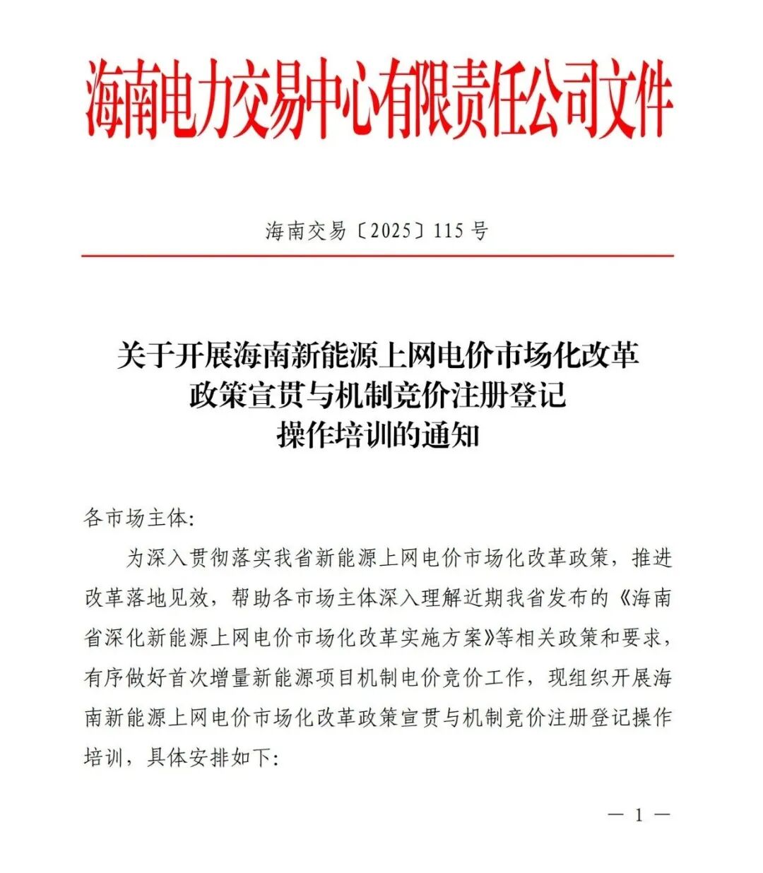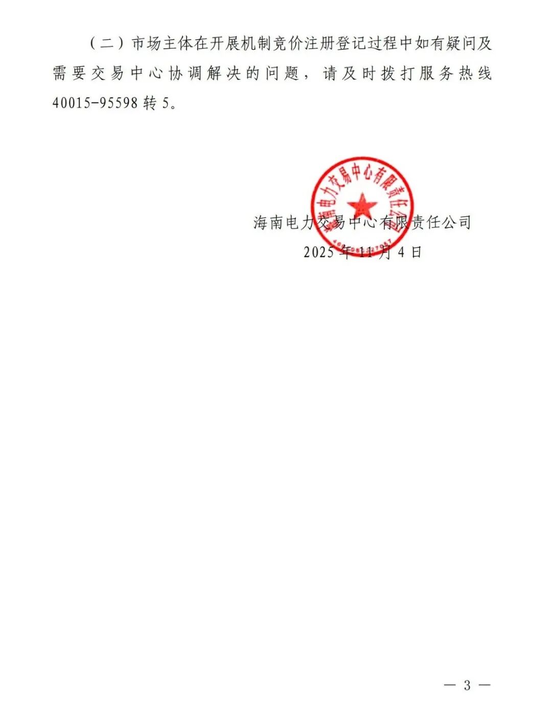 11月5日,海南電力交易中心發(fā)布關(guān)于開(kāi)展2025年海南省增量新能源項(xiàng)目機(jī)制電量競(jìng)價(jià)注冊(cè)登記的通知。詳情如下: