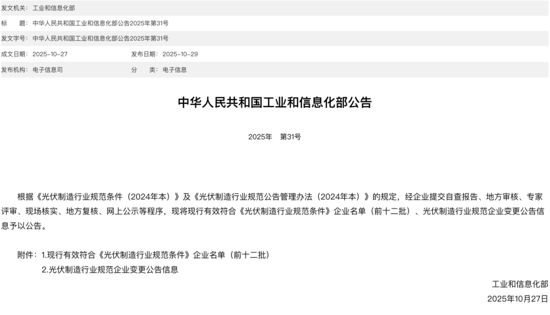 《光伏制造行業(yè)規(guī)范條件》企業(yè)名單公布 華晟以創(chuàng)新技術(shù)與規(guī)范管理持續(xù)引領(lǐng)行業(yè)高質(zhì)量發(fā)展2025-11-05 14:28來源:gessey瀏覽數(shù):226次