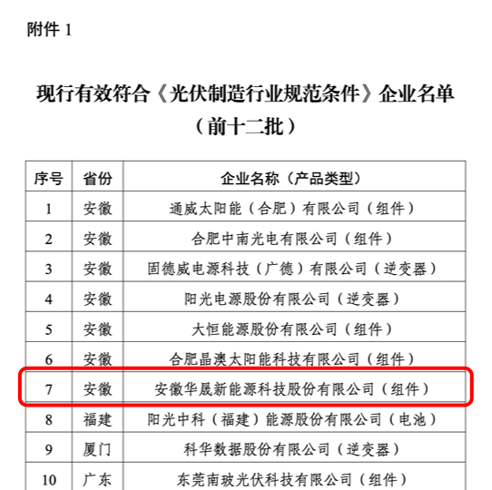 10月29日,工業(yè)和信息化部發(fā)布公告,對現(xiàn)行有效的《光伏制造行業(yè)規(guī)范條件》企業(yè)名單(前十二批)予以集中公告。華晟新能源憑借在技術(shù)創(chuàng)新、產(chǎn)品質(zhì)量、綠色制造及規(guī)范管理等方面持續(xù)的卓越表現(xiàn),繼續(xù)位列該權(quán)威名單之中。此次公告是對華晟新能源長期符合國家行業(yè)最高規(guī)范標準、穩(wěn)健運營與綜合實力的再次確認。