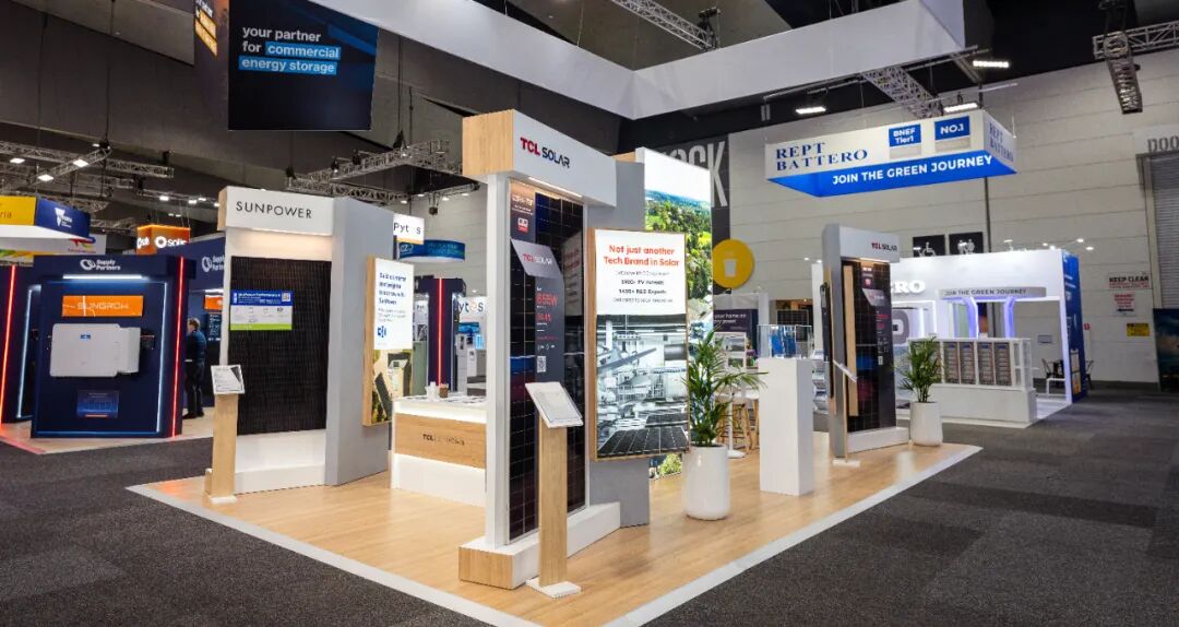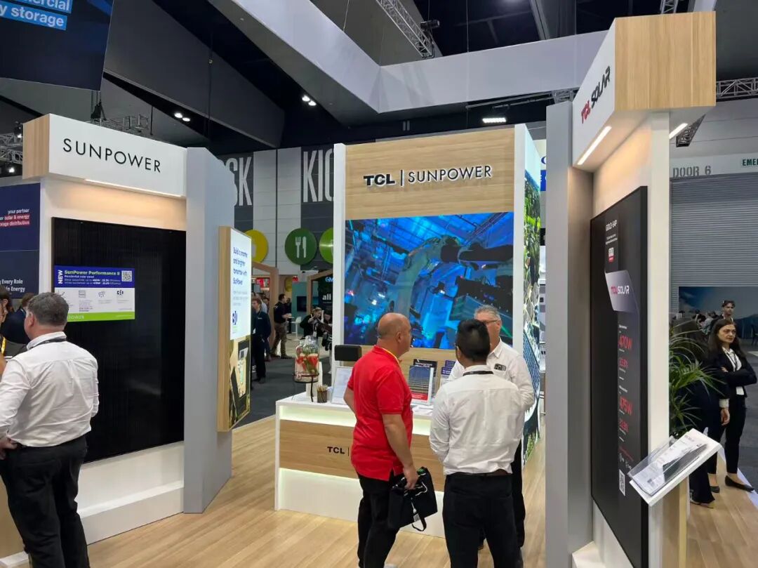 10月29-30日,澳大利亞All Energy展會在墨爾本會議中心隆重舉行。TCL中環(huán)旗下TCL Solar、Sunpower雙品牌攜全系列光伏產(chǎn)品精彩亮相,向澳大利亞作及全球市場展示了領(lǐng)先的光伏技術(shù)與創(chuàng)新成果。 全系列產(chǎn)品亮相,彰顯技術(shù)實力 展會現(xiàn)場,TCL中環(huán)展示了從硅片到組件的全產(chǎn)業(yè)鏈產(chǎn)品陣容。在硅片環(huán)節(jié),重點展示了G12系列大尺寸硅片產(chǎn)品;在電池片領(lǐng)域,呈現(xiàn)了高效電池技術(shù)的最新成果;在組件方面,帶來了包括TOPCon半片組件、單雙玻BC組件在內(nèi)的多系列創(chuàng)新產(chǎn)品,特別是滿屏BC組件的亮相,充分展現(xiàn)了在光伏技術(shù)領(lǐng)域的研發(fā)實力與制造水平,吸引了眾多專業(yè)觀眾駐足交流。