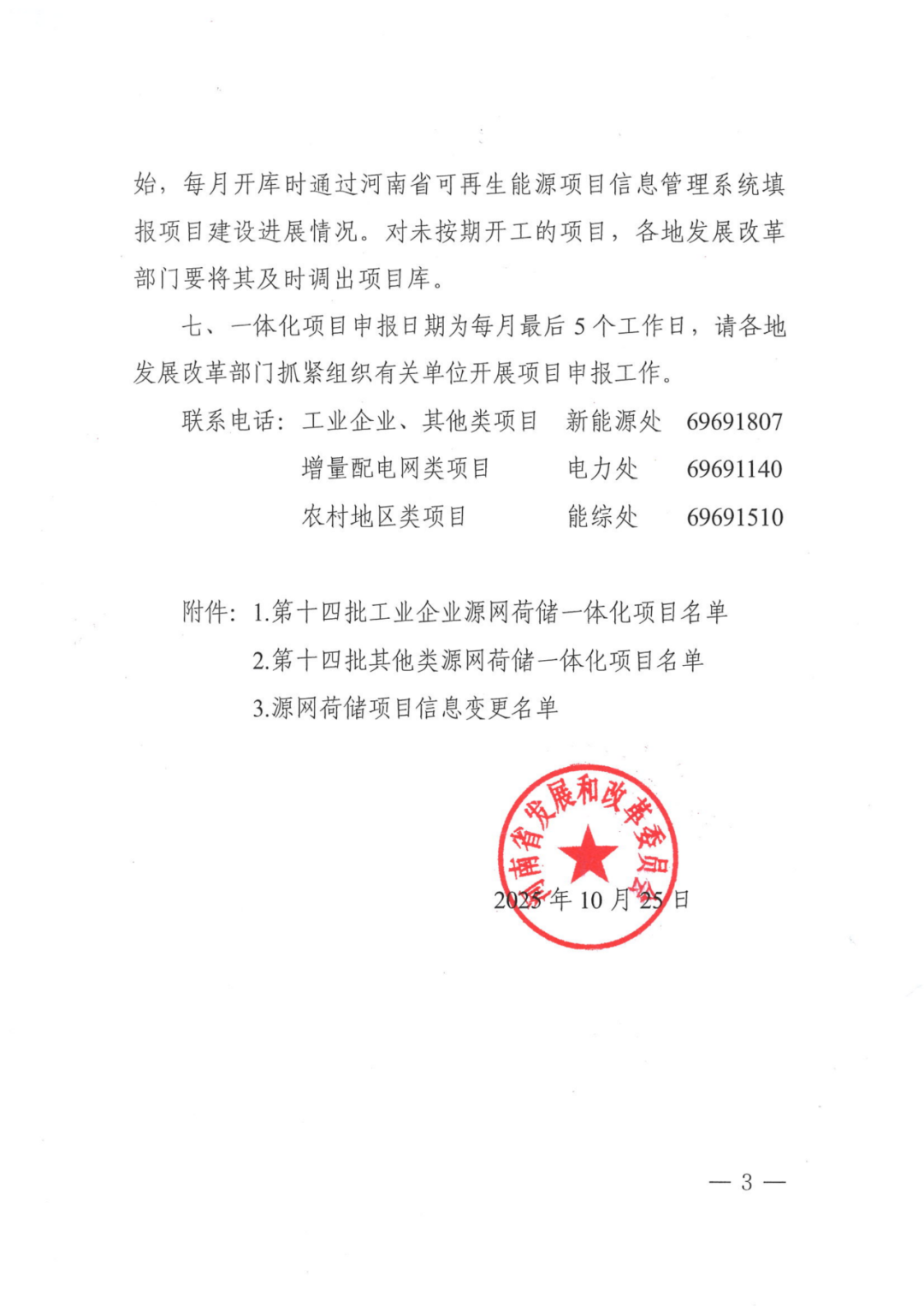 10月27日,河南省發(fā)改委發(fā)布《關(guān)于印發(fā)第十四批源網(wǎng)荷儲一體化項目的通知》。 文件顯示,本次共61個項目納入實施范圍。其中,工業(yè)企業(yè)類41個、項目信息變更及其他類20個,合計規(guī)模共547.78MW,包含風(fēng)電330MW、光伏217.78MW。 文件如下: