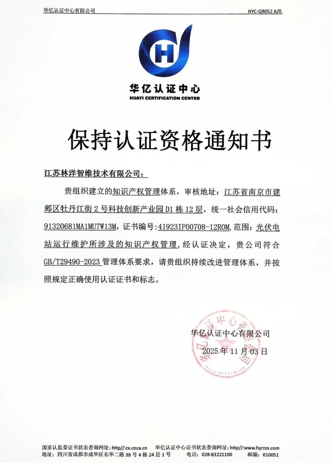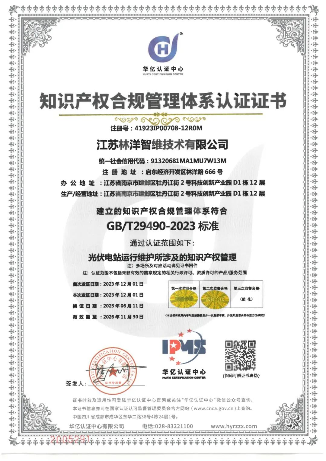 2025年11月,江蘇林洋智維技術(shù)有限公司順利通過(guò)知識(shí)產(chǎn)權(quán)合規(guī)管理體系的換證審核,公司在知識(shí)產(chǎn)權(quán)規(guī)范管理與體系化建設(shè)方面的能力再獲權(quán)威認(rèn)可!