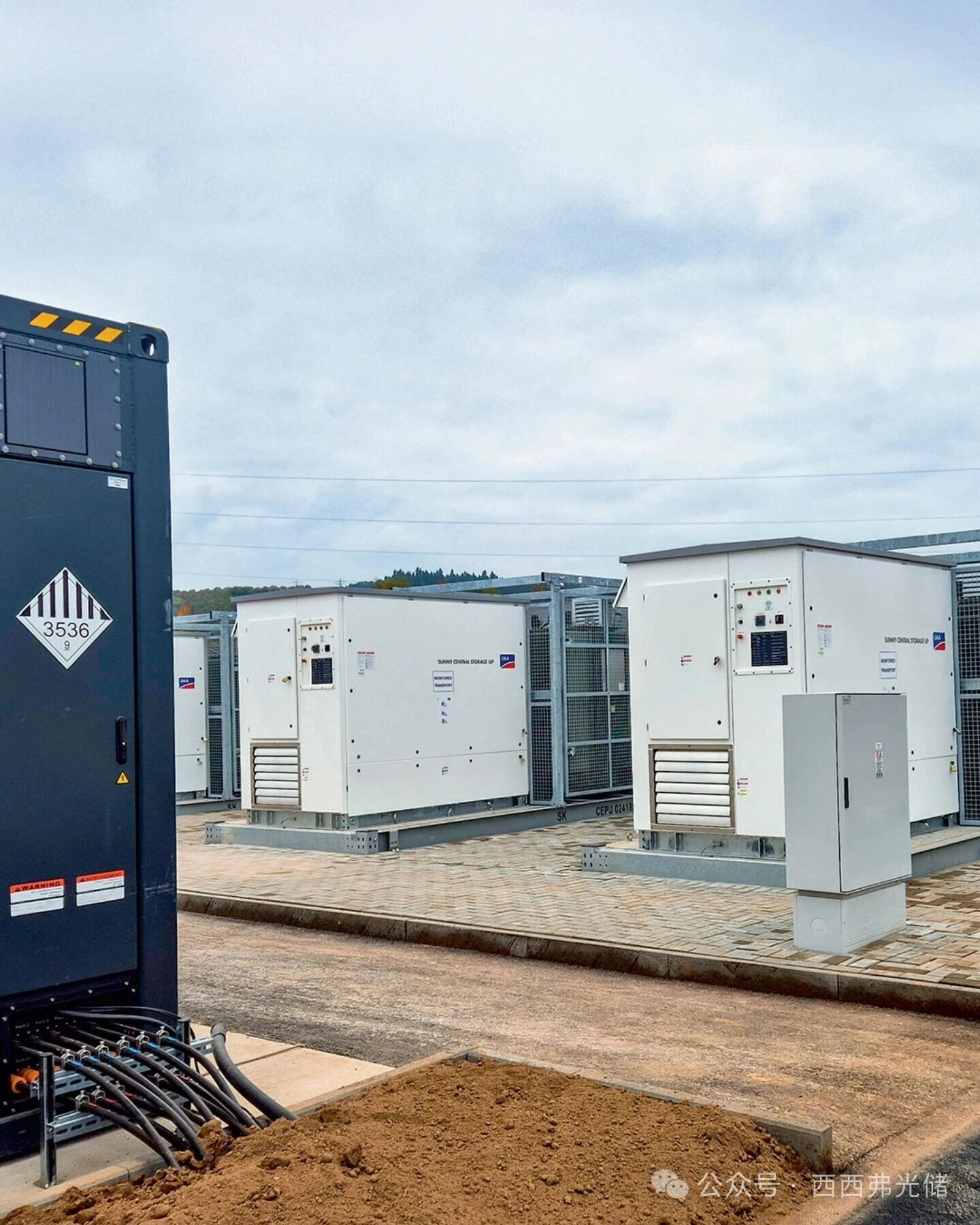 該系統(tǒng)由 7 套中壓電站(MVPS) 構(gòu)成,配備 Sunny Central Storage UP-S 電池逆變器 和 SMA 電廠管理軟件(Power Plant Manager)。其主要功能包括:穩(wěn)定當(dāng)?shù)嘏潆娋W(wǎng)、支撐電網(wǎng)頻率與電壓,以及在局部停電后重新啟動(dòng)連接的變電站。同時(shí),該系統(tǒng)為即將于 2026 年啟動(dòng)的德國慣性市場(chǎng)提供技術(shù)儲(chǔ)備。