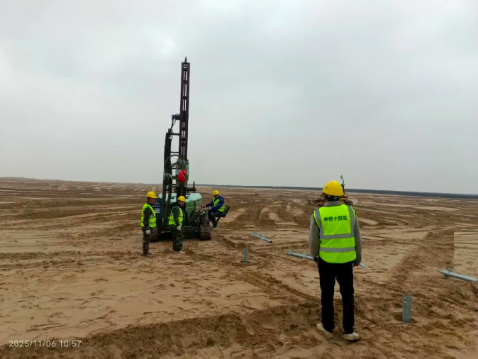11月6日,在甘肅省武威市涼州區(qū)九墩灘騰格里沙漠邊緣,隨著第一根鋼螺旋管樁(試樁)穩(wěn)穩(wěn)扎根地下,甘肅電投酒匯公司武威望舒100兆瓦光伏治沙項目正式拉開施工序幕,宣告項目從前期籌備階段全面轉(zhuǎn)入建設(shè)實施階段。 據(jù)介紹,自啟動籌備工作以來,甘肅電投酒匯公司項目管理部始終錨定建設(shè)目標,科學倒排工期、細化任務(wù)分工,高效推進項目備案、規(guī)劃設(shè)計、手續(xù)辦理等各項前期工作,以精益求精的態(tài)度筑牢項目建設(shè)基礎(chǔ)。 此次正式進入主體工程施工階段,不僅是項目推進的重要里程碑,更彰顯了團隊攻堅克難的堅定決心。在后續(xù)建設(shè)中,項目團隊將嚴格遵循施工計劃與質(zhì)量標準,秉持“精心組織、科學施工、安全高效”的原則,全力推進工程建設(shè),確保項目按時高質(zhì)量建成投產(chǎn),早日發(fā)揮經(jīng)濟與生態(tài)效益。