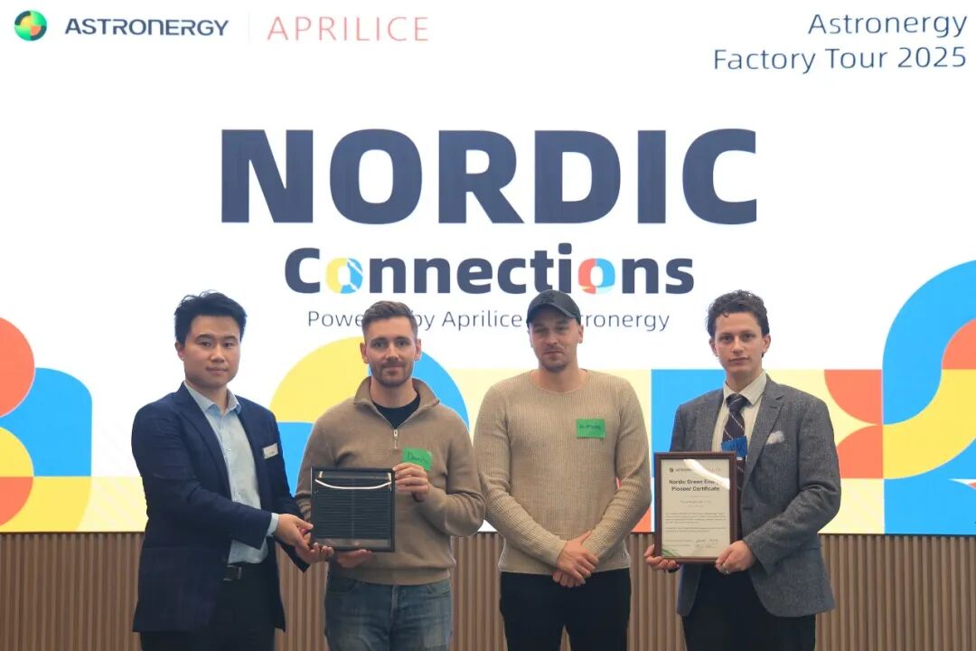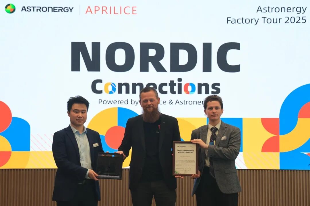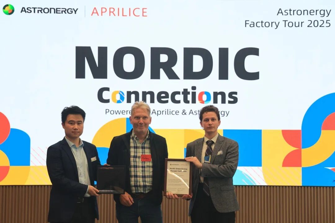頒證儀式 作為北歐最大電氣分銷商Sonepar集團(tuán)旗下專注于可再生能源業(yè)務(wù)的分支公司,Aprilice在北歐地區(qū)分布式光伏、工商業(yè)項(xiàng)目及小型地面電站領(lǐng)域擁有強(qiáng)大的渠道覆蓋與客戶服務(wù)能力。 自今年5月,正泰新能與Aprilice簽訂戰(zhàn)略框架協(xié)議以來,雙方在戰(zhàn)略布局、渠道運(yùn)營等多領(lǐng)域不斷深化合作,通過資源共享與能力共建,Aprilice的本地化網(wǎng)絡(luò)優(yōu)勢與正泰新能的技術(shù)產(chǎn)品支持實(shí)現(xiàn)了高效協(xié)作,為客戶持續(xù)締造清潔能源解決方案。 通過本次參觀交流,正泰新能與Aprilice進(jìn)一步夯實(shí)戰(zhàn)略互信,為未來在北歐及全球市場的協(xié)同發(fā)展注入了全新動能。正泰新能將攜手Aprilice繼續(xù)深化在產(chǎn)品創(chuàng)新、渠道共建與可持續(xù)發(fā)展等領(lǐng)域的合作,共同推動綠色能源技術(shù)的普及與應(yīng)用,以更高效、更可靠的光伏解決方案,響應(yīng)全球能源轉(zhuǎn)型的迫切需求。