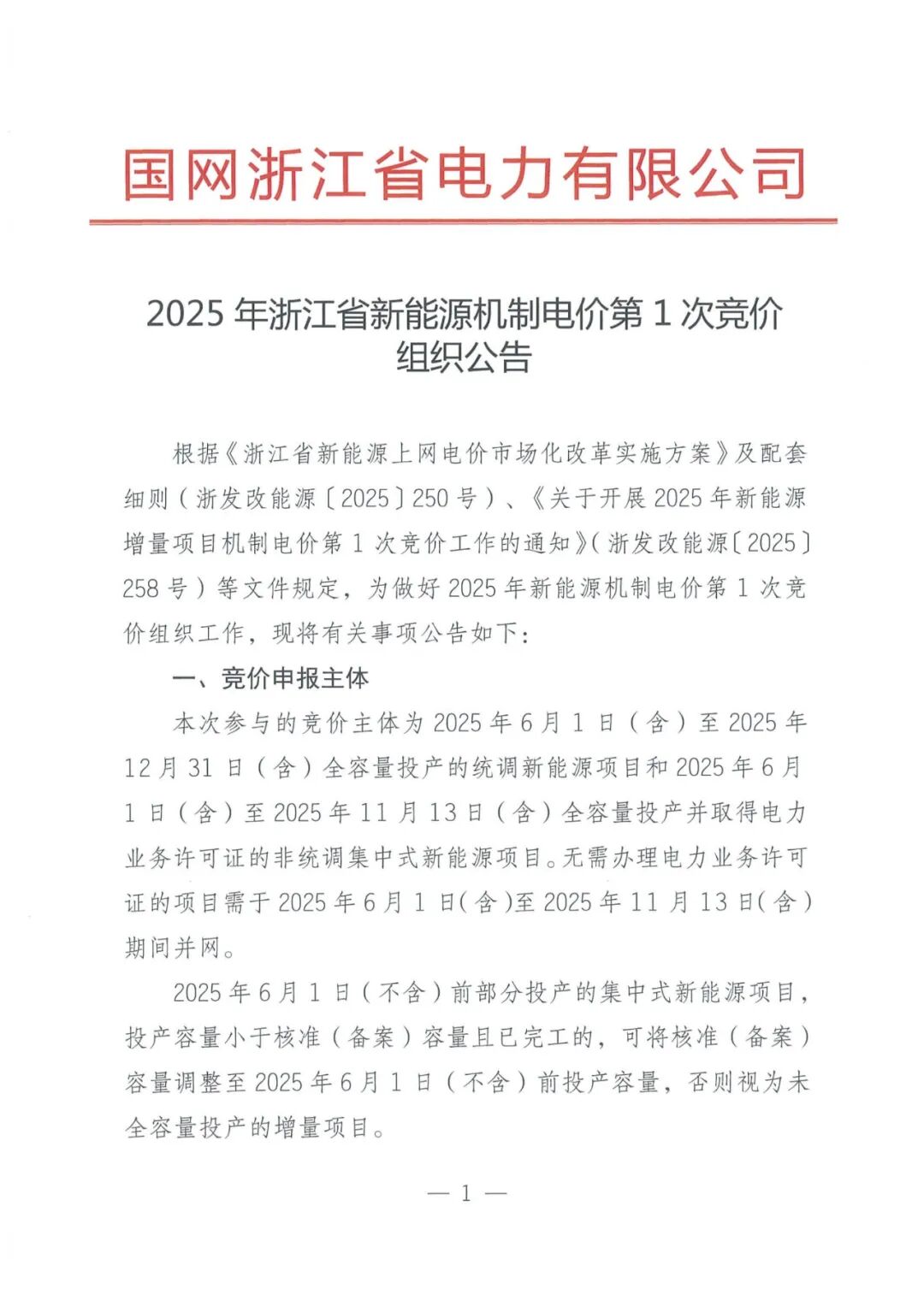 2025年浙江省新能源機制電價第1次競價組織公告發(fā)布2025-11-19 11:05來源:gessey瀏覽數(shù):227次