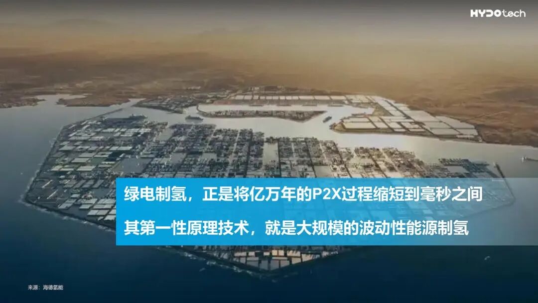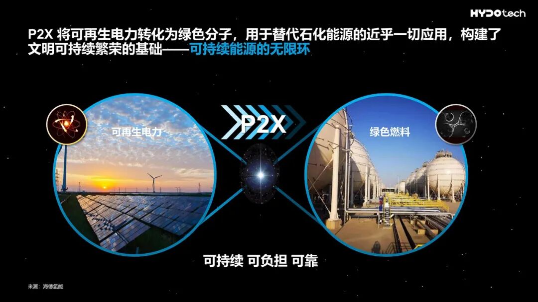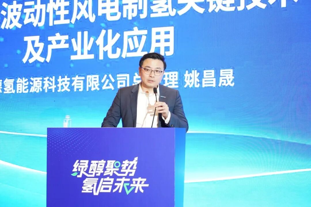 在技術(shù)演講中,海德氫能CEO姚昌晟博士以《大規(guī)模波動(dòng)性風(fēng)電制氫關(guān)鍵技術(shù)及產(chǎn)業(yè)化應(yīng)用》為題,展開了一場(chǎng)關(guān)于能源未來的深刻對(duì)話。他談到:“電子與分子,共同構(gòu)筑了現(xiàn)代文明的能源底色。如今,以風(fēng)電、光伏為代表的可再生電力,正與以化石燃料為基礎(chǔ)的分子能源,通過Power-to-X(P2X)這一關(guān)鍵技術(shù)走向融合——這不僅是技術(shù)的耦合,更是兩個(gè)萬億級(jí)產(chǎn)業(yè)生態(tài)的共振。”