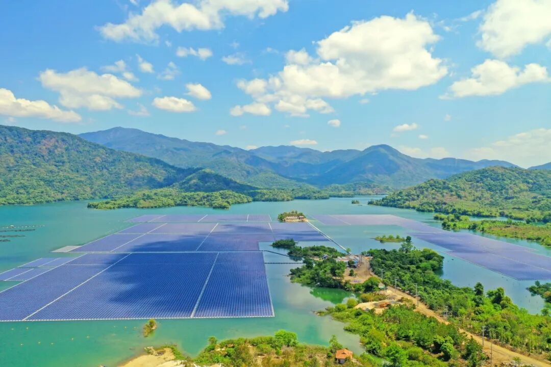 讓世界共享光的價(jià)值 項(xiàng)目實(shí)證 深耕19年,作為第一批進(jìn)軍光伏行業(yè)的民營(yíng)企業(yè),正泰新能早已積累豐富的海上光伏項(xiàng)目經(jīng)驗(yàn)。 早在2018年,正泰新能就已供貨越南大密47.5MW水上漂浮項(xiàng)目,該項(xiàng)目于2019年并網(wǎng),是越南首個(gè)漂浮光伏項(xiàng)目,位于越南平順省大密水庫(kù),水上面積約57公頃。