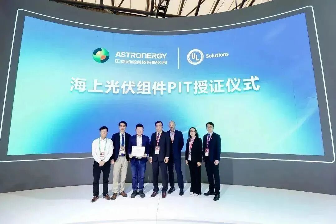 TOPCon高效電池:提升轉(zhuǎn)換效率 正泰新能ASTRO N海光組件采用最新TOPCon 5.0高效電池技術(shù),通過(guò)鈍化膜層結(jié)構(gòu)優(yōu)化及先進(jìn)電極設(shè)計(jì),具有更高可靠性及光學(xué)利用率,組件雙面率可達(dá)80±5%,能夠充分捕捉海水表面的反射光線,提升組件背面發(fā)電增益。亦可定制化搭配一體化覆膜技術(shù),電池轉(zhuǎn)換效率進(jìn)一步提升約0.25%,其先進(jìn)的一體化覆膜技術(shù),可構(gòu)建多重防護(hù)屏障,有效阻隔海洋環(huán)境中的水汽滲透,在確保高可靠性的同時(shí),進(jìn)一步提升發(fā)電性能。 高密封封裝體系:抵御水汽侵蝕 為應(yīng)對(duì)海洋環(huán)境中高濃度鹽離子的侵蝕挑戰(zhàn),正泰新能基于沿海距離與PV等級(jí)的不同工況,開(kāi)發(fā)出多種適配的膠膜配套方案。測(cè)試數(shù)據(jù)證明,在離岸500米以內(nèi)的近海環(huán)境中,EPE與EVA膠膜在綜合性能與經(jīng)濟(jì)性方面表現(xiàn)最佳,其透光性與粘結(jié)性均具備突出優(yōu)勢(shì)。搭載該類膠膜的組件在經(jīng)歷DH3000濕熱測(cè)試、TC600熱循環(huán)實(shí)驗(yàn)、紫外序列以及電勢(shì)誘導(dǎo)衰減試驗(yàn)(PID300)等多項(xiàng)加嚴(yán)可靠性試驗(yàn)后,功率衰減始終控制在3%以內(nèi),展現(xiàn)出優(yōu)異的耐候穩(wěn)定性。 為進(jìn)一步提升海光組件的環(huán)境適應(yīng)性與發(fā)電持久性,正泰新能引入雙層鍍膜結(jié)構(gòu)玻璃,為電池片構(gòu)筑更完善的多重防護(hù)體系。在鹽霧、海水浸泡等一系列加嚴(yán)測(cè)試中,雙鍍玻璃的透光率維持能力顯著優(yōu)于單鍍玻璃。尤其在鹽霧測(cè)試中,雙鍍玻璃組件功率衰減率僅為0.47%,較單鍍玻璃下降約60%。同時(shí),雙層鍍膜玻璃在嚴(yán)苛鹽霧環(huán)境中外觀完好,無(wú)明顯腐蝕痕跡,而單層鍍膜玻璃表面則出現(xiàn)明顯腐蝕斑點(diǎn),有效延長(zhǎng)了組件在海洋環(huán)境下的使用壽命。 耐腐蝕高載荷邊框:抵御極端天氣 正泰新能開(kāi)發(fā)的高耐腐蝕高載荷邊鋁邊框,具備高抗腐蝕性能,在CASS試驗(yàn)(銅鹽加速醋酸鹽霧試驗(yàn))中加嚴(yán)測(cè)試100小時(shí)依舊完好無(wú)損。 同時(shí),為應(yīng)對(duì)臺(tái)風(fēng)等極端天氣變化,海光組件的邊框搭載抗風(fēng)揭設(shè)計(jì),搭配特殊安裝壓塊,可抵抗16級(jí)臺(tái)風(fēng),為海上光伏系統(tǒng)在極端天氣下的穩(wěn)定運(yùn)行提供了堅(jiān)實(shí)保障。 讓世界共享光的價(jià)值 加嚴(yán)測(cè)試 加嚴(yán)測(cè)試是檢驗(yàn)光伏組件能否應(yīng)對(duì)極端環(huán)境變化的衡量標(biāo)尺,而PIT測(cè)試(Pressure Immersion and Temperature)是專為海上光伏組件量身打造的關(guān)鍵可靠性測(cè)試。 該測(cè)試通過(guò)模擬海水環(huán)境,對(duì)組件進(jìn)行不同溫度、重復(fù)加壓的浸沒(méi)和暴露循環(huán)測(cè)試,評(píng)估組件在海水環(huán)境中浸泡之后對(duì)濕漏電,絕緣性能、組件外觀及功率性能的影響及改變。 參考ASTM E1597-10測(cè)試方法,正泰新能海光組件進(jìn)行500次PIT冷熱循環(huán)實(shí)驗(yàn)后,功率衰減僅在0.33%。PIT測(cè)試結(jié)束,組件還經(jīng)歷了35mm、26m/s速度的冰雹撞擊實(shí)驗(yàn),和±1500Pa循環(huán)2000次的動(dòng)載試驗(yàn),均以優(yōu)異成績(jī)通過(guò)測(cè)試考驗(yàn),獲得由全球知名安全檢測(cè)、認(rèn)證機(jī)構(gòu)UL Solutions頒發(fā)的海上光伏組件PIT證書(shū)。