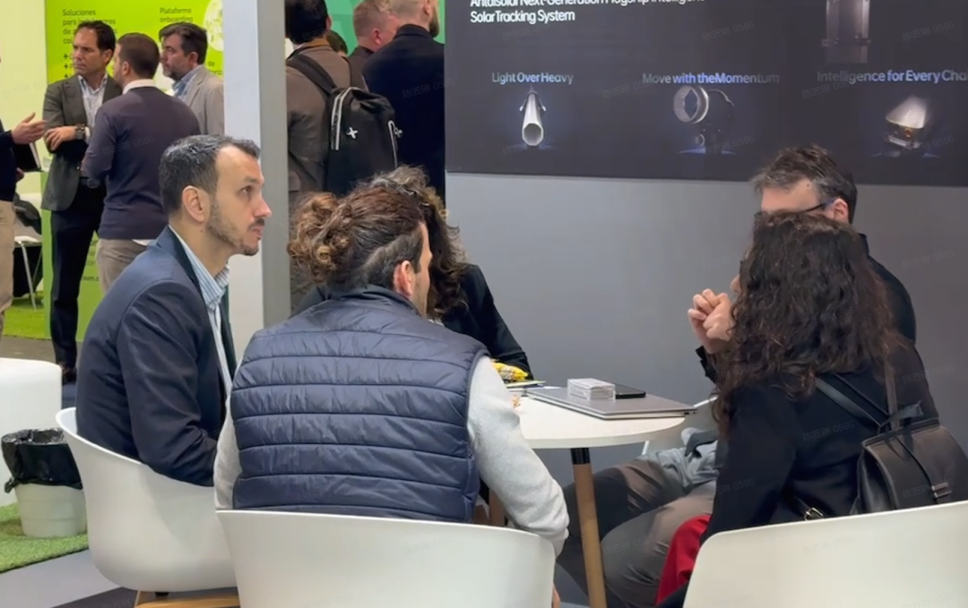 提升服務(wù)能力,持續(xù)強(qiáng)化交付支撐 安泰新能源在2023年于西班牙馬德里設(shè)立了全球研發(fā)中心。長(zhǎng)期深耕歐洲市場(chǎng),安泰新能源已形成從技術(shù)咨詢、結(jié)構(gòu)設(shè)計(jì)、項(xiàng)目交付到現(xiàn)場(chǎng)安裝支持的完整服務(wù)體系。憑借對(duì)當(dāng)?shù)胤ㄒ?guī)、項(xiàng)目特性與工程標(biāo)準(zhǔn)的深度理解,安泰新能源在多個(gè)歐洲重點(diǎn)項(xiàng)目中交出了穩(wěn)定表現(xiàn)并獲得客戶高度認(rèn)可。 展會(huì)期間,安泰新能源團(tuán)隊(duì)與來(lái)自西班牙的開(kāi)發(fā)商、EPC承包商及行業(yè)機(jī)構(gòu)進(jìn)行了廣泛交流,圍繞項(xiàng)目模式、政策趨勢(shì)與合作機(jī)遇展開(kāi)深度探討。