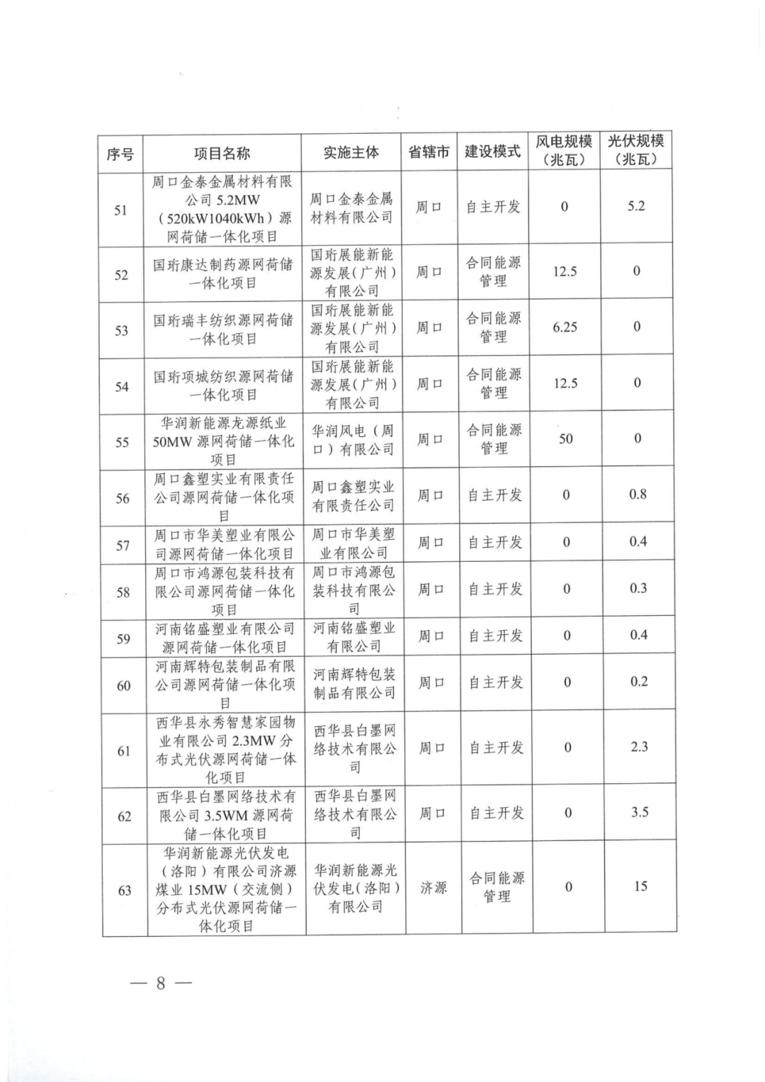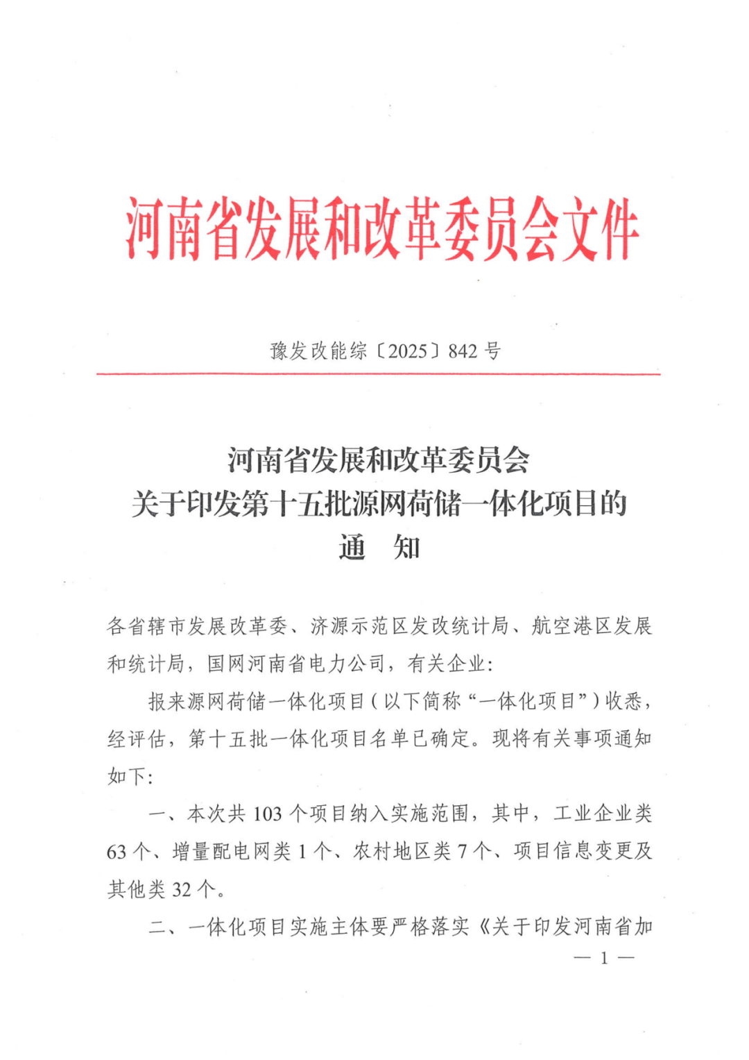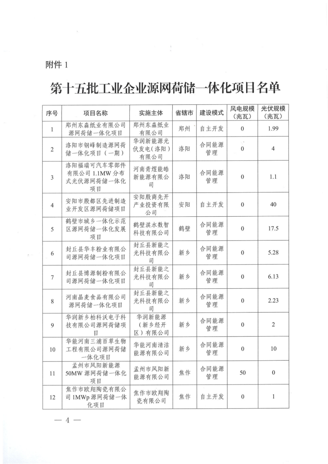 11月21日,河南省發(fā)改委發(fā)布《河南省發(fā)展和改革委員會(huì)關(guān)于印發(fā)第十五批源網(wǎng)荷儲(chǔ)一體化項(xiàng)目的通知》。 文件顯示,本次共103個(gè)項(xiàng)目納入實(shí)施范圍,其中,工業(yè)企業(yè)類63個(gè)、增量配電網(wǎng)類1個(gè)、農(nóng)村地區(qū)類7個(gè)、項(xiàng)目信息變更及其他類32個(gè),總?cè)萘?65.26MW,包含風(fēng)電163.75MW、光伏601.51MW。 詳情如下: