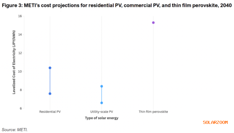 鈣鈦礦薄、輕且高度多用途,理論上可以安裝在建筑墻體、窗戶及許多其他城市表面上,因此有潛力繞過這些障礙。城市安裝也意味著鈣鈦礦可以與電力需求中心共址。這有助于減輕日本區(qū)域電網(wǎng)的負(fù)擔(dān),增強電力輸配系統(tǒng)的韌性。 日本政府還強調(diào)鈣鈦礦在工業(yè)戰(zhàn)略和能源安全方面帶來的優(yōu)勢。日本曾是領(lǐng)先的太陽能電池板制造商,自2005年起被中國超越,成為全球太陽能電池板出口國。隨著鈣鈦礦太陽能電池產(chǎn)業(yè)仍處于起步階段,日本看到了重新獲得與中國及其他競爭對手競爭競爭力的機會。尤其是因為日本是碘的第二大生產(chǎn)國——鈣鈦礦太陽能電池的關(guān)鍵原料——這也支持了METI建立完全自給自足供應(yīng)鏈的目標(biāo)。因此,在尚未被任何國家主導(dǎo)的太陽能技術(shù)中獲得競爭優(yōu)勢的可能性具有特別的吸引力。 價格目標(biāo)不切實際 雖然鈣鈦礦太陽能電池的宣傳優(yōu)勢確實存在,但METI的目標(biāo)價格似乎不夠現(xiàn)實。鑒于政策優(yōu)先事項往往影響了METI的成本假設(shè),這或許不足為奇。 在2025年1月的新聞發(fā)布會上,日本領(lǐng)先的鈣鈦礦制造商赤水化學(xué)表示,預(yù)計到2030年其薄膜型鈣鈦礦的最低成本(LCOE)將達到約20日元/千瓦時,而政府同年目標(biāo)為14日元/千瓦時。目標(biāo)與預(yù)測之間的這種差異很可能會持續(xù)。發(fā)布戰(zhàn)略文件幾個月后,METI匯總了日本六家鈣鈦礦太陽能電池制造商的成本展望。根據(jù)最終預(yù)測,鈣鈦礦的LCOE到2040年將達到約15.3日元/千瓦時——遠(yuǎn)高于該部設(shè)定的2040年10至14日元/千瓦時目標(biāo)。更重要的是,鈣鈦礦的LCOE預(yù)測將遠(yuǎn)高于傳統(tǒng)住宅和公用事業(yè)規(guī)模的太陽能光伏——到2040年分別為7.6–10.4日元/千瓦時和6.6–8.4日元/千瓦時。