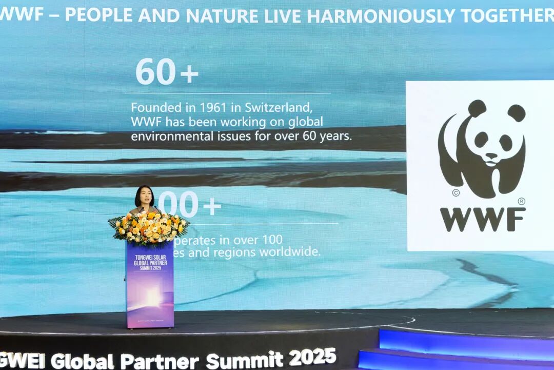 WWF北京代表處首席代表盧倫燕女士 于2025通威高效組件全球合作伙伴大會(huì)海外分論壇作主題演講 通過與WWF的合作,通威將自身在可再生能源領(lǐng)域的專業(yè)能力與全球網(wǎng)絡(luò),引入到極地生態(tài)保護(hù)的實(shí)踐之中:為項(xiàng)目提供穩(wěn)定的資源保障與組織支持,推動(dòng)科研成果更快落地,轉(zhuǎn)化為實(shí)際可行的保護(hù)行動(dòng);以行業(yè)影響力與國(guó)際合作經(jīng)驗(yàn),推動(dòng)極地議題進(jìn)入更廣泛的公共討論,喚起跨領(lǐng)域的理解、參與支持。隨著全球化布局的深入,通威所承擔(dān)的環(huán)境責(zé)任也在不斷延展。此次從北極出發(fā),正是通威將責(zé)任落實(shí)為具體行動(dòng)、積極回應(yīng)全球生態(tài)挑戰(zhàn)的重要一步。 通威與WWF的合作將圍繞明確的階段性目標(biāo)不斷推進(jìn)。每一個(gè)階段,雙方都將緊密協(xié)作,把科研成果轉(zhuǎn)化為包括極地物種監(jiān)測(cè)、社區(qū)共存管理、關(guān)鍵生態(tài)區(qū)域守護(hù)等在內(nèi)的實(shí)際行動(dòng),并通過階段性總結(jié)和公開傳播,不斷優(yōu)化方法、積累經(jīng)驗(yàn),逐步形成一條可持續(xù)、可復(fù)制的實(shí)踐路徑。通威希望把每一次在實(shí)地保護(hù)工作中的有效經(jīng)驗(yàn),匯聚成更長(zhǎng)周期的系統(tǒng)性進(jìn)步;也希望把企業(yè)的行業(yè)能力,與國(guó)際環(huán)保機(jī)構(gòu)的專業(yè)經(jīng)驗(yàn),結(jié)合成可以分享、可以被更多伙伴采用的“聯(lián)合樣本”。 這不僅是一份合作協(xié)議,更是一份面向未來的約定。