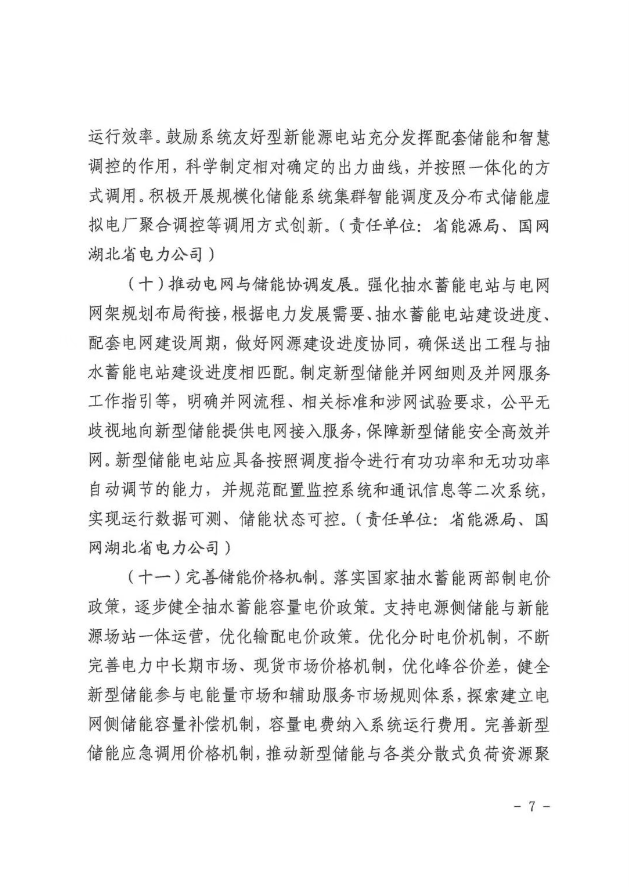 11月27日消息,湖北省能源局、湖北省發(fā)改委印發(fā)《湖北省儲能體系建設(shè)方案(2025-2030年)》。提到,到2027年,全省儲能裝機將達到800萬千瓦,其中新增儲能將以新型儲能為主。到2030年,新增儲能以大型抽水蓄能為主,全省儲能裝機達到1700萬千瓦,支撐8000萬千瓦以上的新能源合理消納利用。 其中,新型儲能全省裝機2027年達到500萬千瓦,2030年達到800萬千瓦。抽水蓄能全省裝機2027年達到287萬千瓦,2030年達到912萬千瓦。 《方案》提出,健全儲能運行管理服務(wù)機制,面向儲能健康可持續(xù)發(fā)展需求,建立健全電力系統(tǒng)調(diào)峰、儲能和智能化調(diào)度管理體系,加快完善與儲能發(fā)展相適應(yīng)的電力市場和價格機制,推動源網(wǎng)荷儲協(xié)同優(yōu)化,營造良好發(fā)展環(huán)境。具體包括:提升儲能調(diào)用水平、推動電網(wǎng)與儲能協(xié)調(diào)發(fā)展、完善儲能價格機制等。 持續(xù)完善市場化交易規(guī)則,鼓勵新型儲能參與市場化交易,自主確定充放電曲線,提高運行效率。鼓勵系統(tǒng)友好型新能源電站充分發(fā)揮配套儲能和智慧調(diào)控的作用,科學制定相對確定的出力曲線,并按照一體化的方式調(diào)用。積極開展規(guī)?;瘍δ芟到y(tǒng)集群智能調(diào)度及分布式儲能虛擬電廠聚合調(diào)控等調(diào)用方式創(chuàng)新。 落實國家抽水蓄能兩部制電價政策,逐步健全抽水蓄能容量電價政策。支持電源側(cè)儲能與新能源場站一體運營,優(yōu)化輸配電價政策。優(yōu)化分時電價機制,不斷完善電力中長期市場、現(xiàn)貨市場價格機制,優(yōu)化峰谷價差,健全新型儲能參與電能量市場和輔助服務(wù)市場規(guī)則體系,探索建立電網(wǎng)側(cè)儲能容量補償機制,容量電費納入系統(tǒng)運行費用。完善新型儲能應(yīng)急調(diào)用價格機制,推動新型儲能與各類分散式負荷資源聚合,打造一批虛擬電廠。 原文如下: