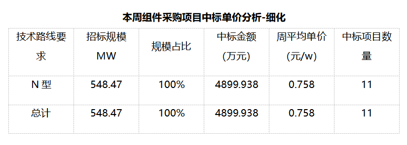 三、EPC總承包及組件采購情況匯總 本月光伏EPC總承包中標(biāo)規(guī)模達(dá)1488.626MW,總中標(biāo)金額541546.64萬元,平均中標(biāo)單價為2.032元/W,中標(biāo)數(shù)量64個。 本月光伏組件采購中標(biāo)規(guī)模達(dá)523.24MW,總中標(biāo)金額4899.938萬元,平均中標(biāo)單價為0.76元/W,中標(biāo)數(shù)量10個。