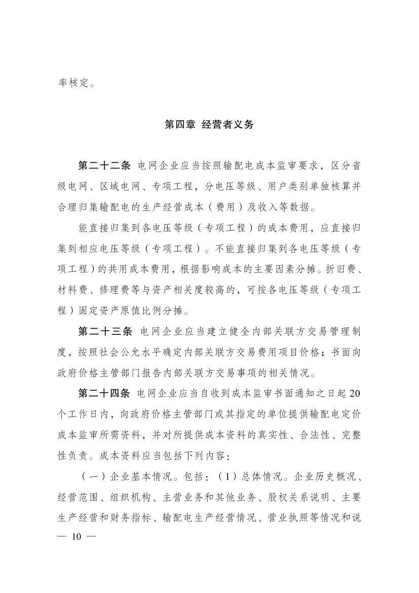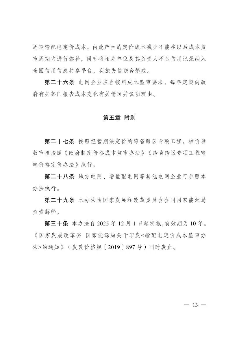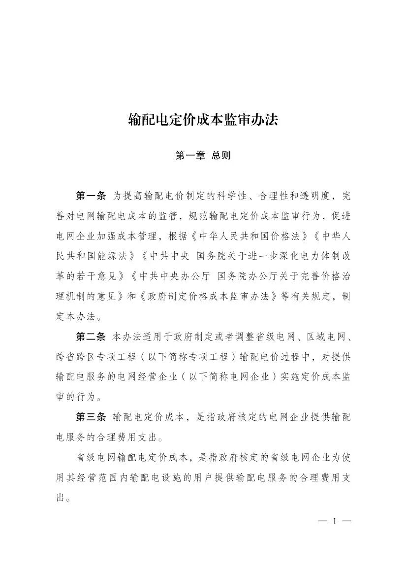 為進一步完善輸配電價監(jiān)管制度,近日,國家發(fā)展改革委修訂了《輸配電定價成本監(jiān)審辦法》《省級電網(wǎng)輸配電價定價辦法》《區(qū)域電網(wǎng)輸電價格定價辦法》和《跨省跨區(qū)專項工程輸電價格定價辦法》四個辦法。 四個辦法在修訂過程中,充分聽取了各方面意見,并公開征求了社會意見。此次修訂,在保持政策框架和主要方法總體穩(wěn)定的基礎上,圍繞適應新型電力系統(tǒng)建設的新形勢、新變化、新要求,重點就促進新能源消納利用、助力能源綠色低碳轉型,保障電力系統(tǒng)安全平穩(wěn)和高效運行,促進電網(wǎng)企業(yè)提升管理效能等,作出了一系列新的制度性安排。一是促進新能源消納利用。通過在輸配電價中引入容量機制,明確對新能源發(fā)電就近消納等新業(yè)態(tài)實行單一容量制電價,對以輸送清潔能源電量為主的跨省跨區(qū)專項工程探索實行兩部制或單一容量制電價,降低新能源交易成本,從而促進新能源更大范圍、更高水平利用。二是促進電力安全保供。通過完善以聯(lián)網(wǎng)互濟功能為主的跨省跨區(qū)專項工程輸電價格機制,支持電網(wǎng)加強互濟通道建設,增強全國電力負荷錯峰、余缺互濟和應急支援能力,促進整個電力系統(tǒng)安全平穩(wěn)運行和效率提升。三是促進電網(wǎng)企業(yè)降本增效。通過優(yōu)化完善部分成本參數(shù),推動電網(wǎng)企業(yè)強化內部管理。此外,根據(jù)近年來法律法規(guī)和會計準則調整情況,對有關規(guī)定作了相應修改完善,以做好政策銜接和工作協(xié)同。 下一步,國家發(fā)展改革委將根據(jù)修訂后的輸配電成本監(jiān)審和定價辦法,對省級電網(wǎng)、區(qū)域電網(wǎng)和跨省跨區(qū)專項工程開展成本監(jiān)審和價格核定等工作。 詳情見下: 國家發(fā)展改革委關于印發(fā)輸配電定價成本監(jiān)審辦法、 省級電網(wǎng)輸配電價定價辦法、 區(qū)域電網(wǎng)輸電價格定價辦法 和跨省跨區(qū)專項工程輸電價格定價辦法的通知 發(fā)改價格規(guī)〔2025〕1490號 各省、自治區(qū)、直轄市發(fā)展改革委,國家電網(wǎng)有限公司、南方電網(wǎng)有限責任公司、內蒙古電力(集團)有限責任公司: 為貫徹落實中共中央辦公廳、國務院辦公廳《關于完善價格治理機制的意見》要求,進一步完善電網(wǎng)企業(yè)輸配電環(huán)節(jié)價格監(jiān)管制度,經(jīng)商國家能源局,我們研究制定了《輸配電定價成本監(jiān)審辦法》《省級電網(wǎng)輸配電價定價辦法》《區(qū)域電網(wǎng)輸電價格定價辦法》和《跨省跨區(qū)專項工程輸電價格定價辦法》。現(xiàn)印發(fā)給你們,請按照執(zhí)行。 國家發(fā)展改革委 2025年11月21日
