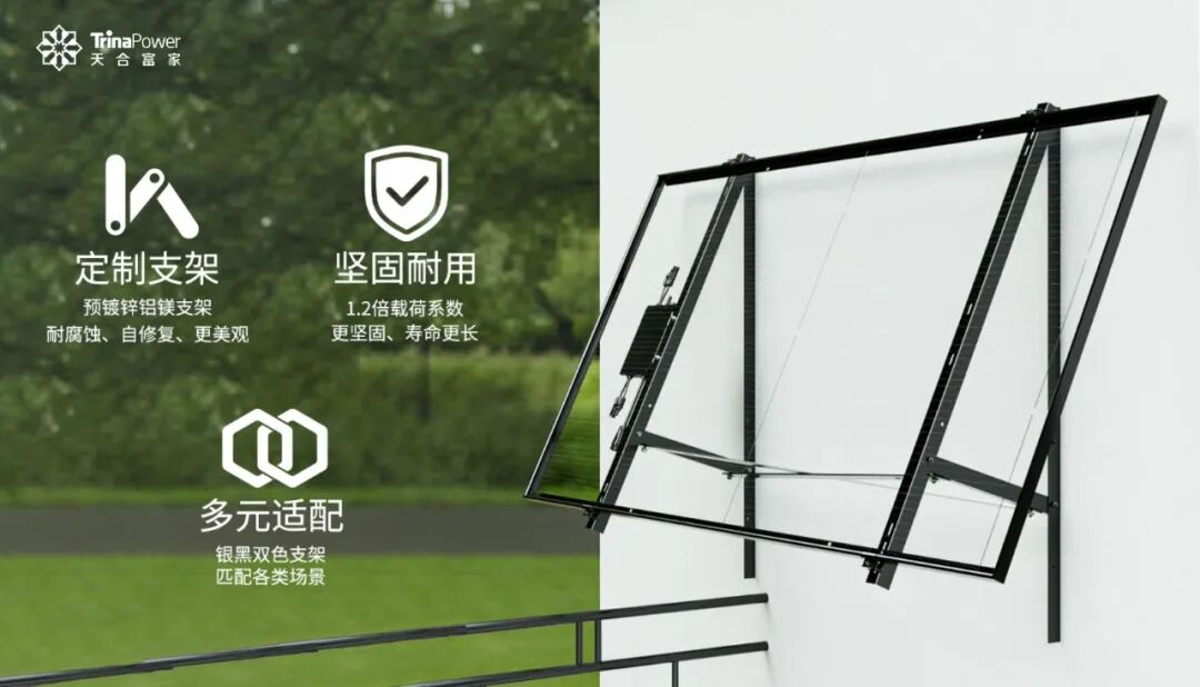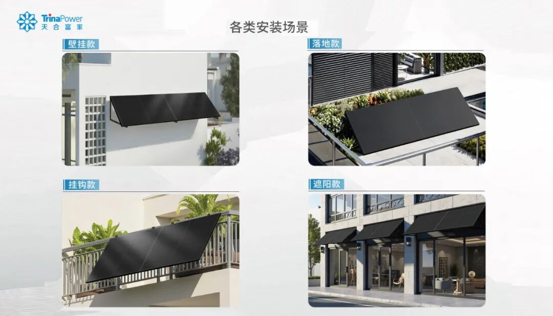 除組件和支架外,適配全黑微型逆變器,實(shí)現(xiàn)一拖二、一拖四隨心配,采用組件級(jí)MPPT,發(fā)電時(shí)間更長(zhǎng),發(fā)電效率提升約1.5%。防逆流電表的CT互感器在捕捉到反向電流時(shí),立刻向逆變器發(fā)送信號(hào),觸發(fā)逆變器降低發(fā)電功率,直至發(fā)電量與用電流相匹配,從源頭避免余電流入電網(wǎng)。此外,“省電王”還可選配儲(chǔ)逆一體機(jī),2kWh便攜儲(chǔ)能,滿足不同用戶需求,真正讓發(fā)電、儲(chǔ)電、用電無(wú)憂。 當(dāng)然,產(chǎn)品性能也只是天合富家的基本門(mén)檻,作為頭部品牌,其高度和深度更在于對(duì)當(dāng)前陽(yáng)臺(tái)光伏的兩大核心痛點(diǎn)——應(yīng)用場(chǎng)景局限與安全隱憂的創(chuàng)新性突破。 就場(chǎng)景而言,深度契合國(guó)內(nèi)多場(chǎng)景的用電需求,天合富家“省電王”突破了單一場(chǎng)景的限制,能全面適配露臺(tái)、商鋪、公寓、庭院、冷庫(kù)等各種用電場(chǎng)景。除此之外,產(chǎn)品還提供了壁掛款、落地款、掛鉤款、遮陽(yáng)款等多種款式,無(wú)需改變房屋結(jié)構(gòu),一小時(shí)即可完成安裝,拆裝更便捷。