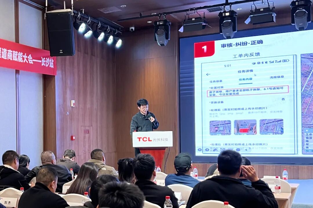 在安全與資產(chǎn)保障層面,大會(huì)簡(jiǎn)化復(fù)雜流程講解,重點(diǎn)聚焦“風(fēng)險(xiǎn)防控+權(quán)益保障”:通過典型安全案例警示強(qiáng)化風(fēng)險(xiǎn)預(yù)判意識(shí),梳理保險(xiǎn)理賠的關(guān)鍵節(jié)點(diǎn)與優(yōu)化流程,將隱患排查、極端天氣防護(hù)等核心環(huán)節(jié)嵌入運(yùn)維全周期。這一環(huán)節(jié)的價(jià)值在于筑牢電站安全防線,降低渠道商運(yùn)維風(fēng)險(xiǎn),同時(shí)讓業(yè)主資產(chǎn)權(quán)益得到明確保障,增強(qiáng)用戶信任度。 TCL光伏科技的場(chǎng)景化運(yùn)維與數(shù)字化賦能,主要圍繞“效率提升”展開:針對(duì)承租人變更、租金異常等高頻場(chǎng)景,提供可直接復(fù)用的標(biāo)準(zhǔn)化服務(wù)模板,減少渠道商摸索成本;對(duì)自主研發(fā)的“巡天智能運(yùn)維平臺(tái)”進(jìn)行優(yōu)化,明確工單處理全流程規(guī)范與異常問題閉環(huán)邏輯,以數(shù)字化工具打破效率壁壘。此舉的價(jià)值在于縮短服務(wù)響應(yīng)時(shí)間,提升運(yùn)維處理精度,幫助渠道商以更低成本實(shí)現(xiàn)更高服務(wù)質(zhì)量。