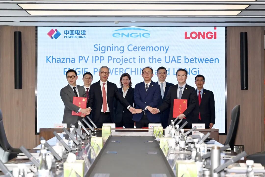 近日,隆基綠能董事長(zhǎng)、總經(jīng)理鐘寶申與中國電建黨委常委、副總經(jīng)理陳觀福,Engie集團(tuán)首席執(zhí)行官凱瑟琳·麥格雷格在北京進(jìn)行會(huì)談,三方就深化清潔能源領(lǐng)域合作、共促高質(zhì)量發(fā)展進(jìn)行深入交流,并正式簽署阿聯(lián)酋阿布扎比PV4哈茲納1.5GW光伏項(xiàng)目合作協(xié)議。這是繼今年5月三方在法國巴黎簽署框架協(xié)議后的又一步新動(dòng)作,標(biāo)志著中東項(xiàng)目合作已全面進(jìn)入落地階段。