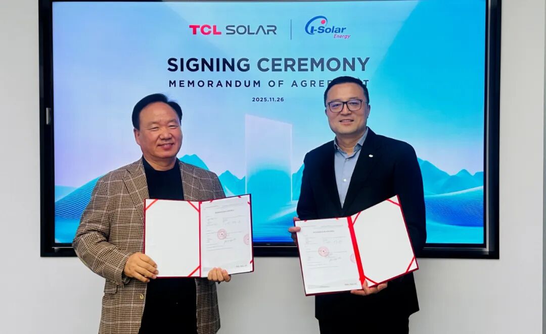 通力合作,共赴韓國零碳新未來 I-Solar Energy作為韓國最大的工商業(yè)EPC公司之一,在工商業(yè)光伏領(lǐng)域擁有豐富的項(xiàng)目經(jīng)驗(yàn)和卓越的技術(shù)實(shí)力。公司專注于為客戶提供定制化的光伏系統(tǒng)設(shè)計(jì)、采購和建設(shè)服務(wù),深耕韓國市場多年。 TCL Solar作為TCL中環(huán)旗下核心組件品牌,自2024年品牌發(fā)布以來,一直致力于為全球客戶提供高效率、高品質(zhì)的組件及服務(wù)。公司依托TCL四十余年的產(chǎn)業(yè)積淀,在全球光伏市場展現(xiàn)出強(qiáng)大的競爭力。 TCL中環(huán)建立了超越行業(yè)標(biāo)準(zhǔn)的嚴(yán)苛質(zhì)量管控體系,其工業(yè)4.0自動(dòng)化產(chǎn)線配合基地質(zhì)量、總部質(zhì)量、營銷端監(jiān)造的三重保障,實(shí)現(xiàn)了從硅片到組件的全流程可溯性管理。公司通過多式聯(lián)運(yùn)體系,實(shí)現(xiàn)組件產(chǎn)品的全球配運(yùn),目前已行銷60多個(gè)國家和地區(qū)。 據(jù)悉,韓國政府近年來將可再生能源列為國家戰(zhàn)略核心,通過稅收減免、安裝補(bǔ)貼及固定電價(jià)收購政策,大幅降低光伏項(xiàng)目初期投入成本。預(yù)計(jì)未來五年,韓國工商業(yè)光伏市場將迎來快速增長期。 此次合作是TCL Solar深化全球化布局的重要一步。未來,雙方將建立定期交流機(jī)制,在技術(shù)研發(fā)、項(xiàng)目設(shè)計(jì)和市場開拓等方面深化合作,共同推動(dòng)韓國光伏市場的高質(zhì)量發(fā)展。隨著合作的深入推進(jìn),雙方有望在韓國打造多個(gè)標(biāo)桿性光伏項(xiàng)目,為當(dāng)?shù)鼐G色能源發(fā)展樹立新典范,攜手共創(chuàng)零碳未來。