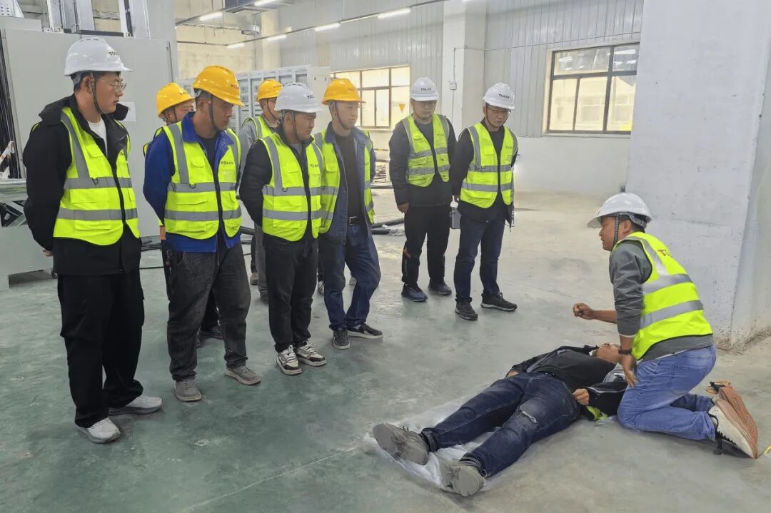 “真滅火、真動作”的實(shí)操演練讓安全技能落地生根。TCL光伏科技專門開展滅火器實(shí)操演練,讓每一位員工親身參與滅火操作,熟練掌握滅火器的使用方法與初期火災(zāi)撲救技巧,確保在險情發(fā)生時能快速響應(yīng)、有效處置。針對電站作業(yè)可能出現(xiàn)的人員受傷情況,活動還增設(shè)了心肺復(fù)蘇教學(xué)及演練環(huán)節(jié),邀請專業(yè)人員現(xiàn)場指導(dǎo),從動作規(guī)范到操作流程逐一講解示范,提升員工應(yīng)急救援能力。此外,隱患排查實(shí)操同步推進(jìn),組織員工對電站內(nèi)電氣設(shè)備、消防通道、消防設(shè)施等關(guān)鍵區(qū)域進(jìn)行全面排查,及時發(fā)現(xiàn)并整改潛在安全隱患,將風(fēng)險扼殺在萌芽狀態(tài)。